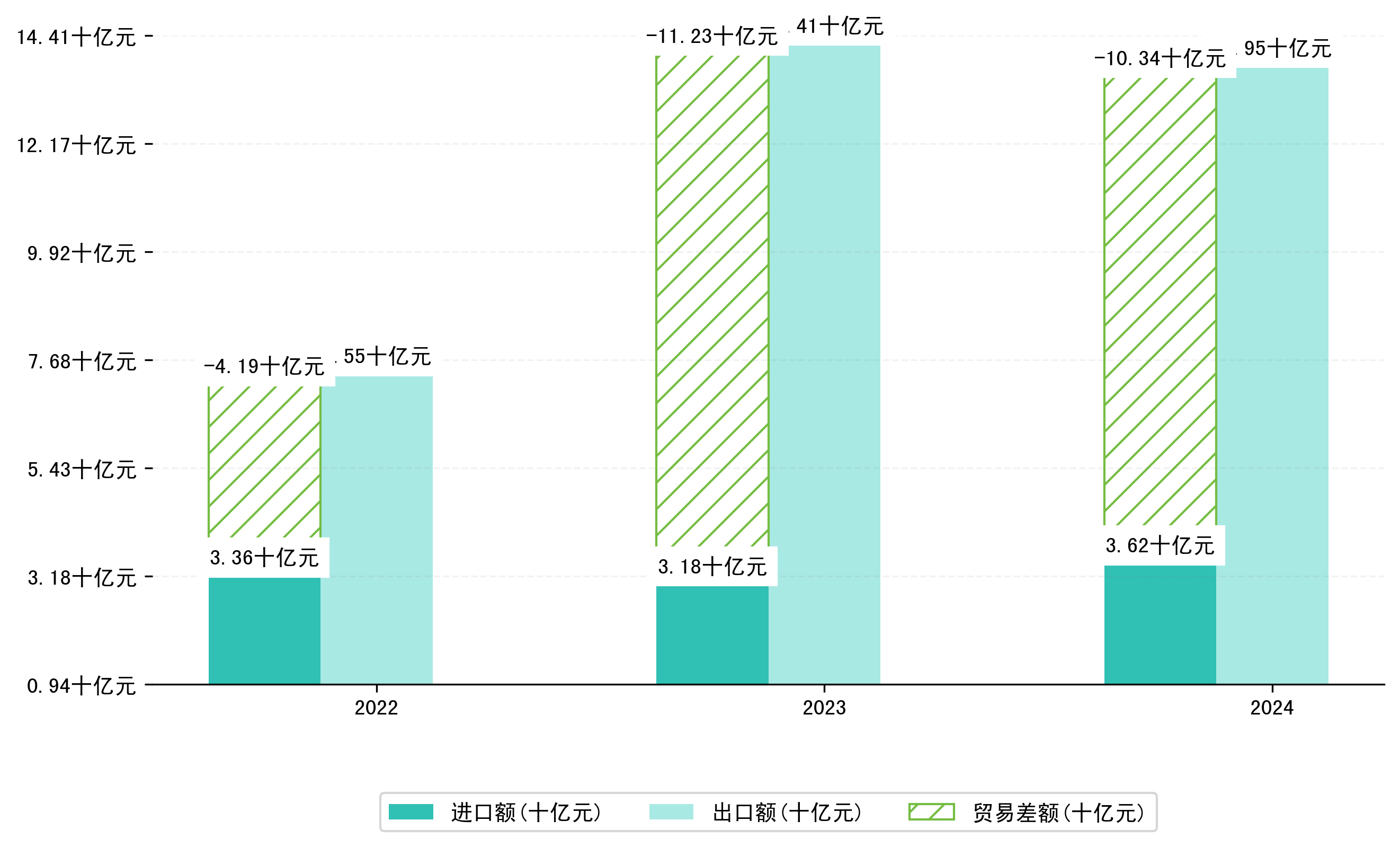 以人民币计,2024年3月乌鲁木齐市贸易差额为35,6630,8617万元(贸易顺差),相比上月增加了19,9628,8555万元,即2,8102,9077万美元;相比上年同期减少了4,2750,5958万元,同比减少-10.7%。