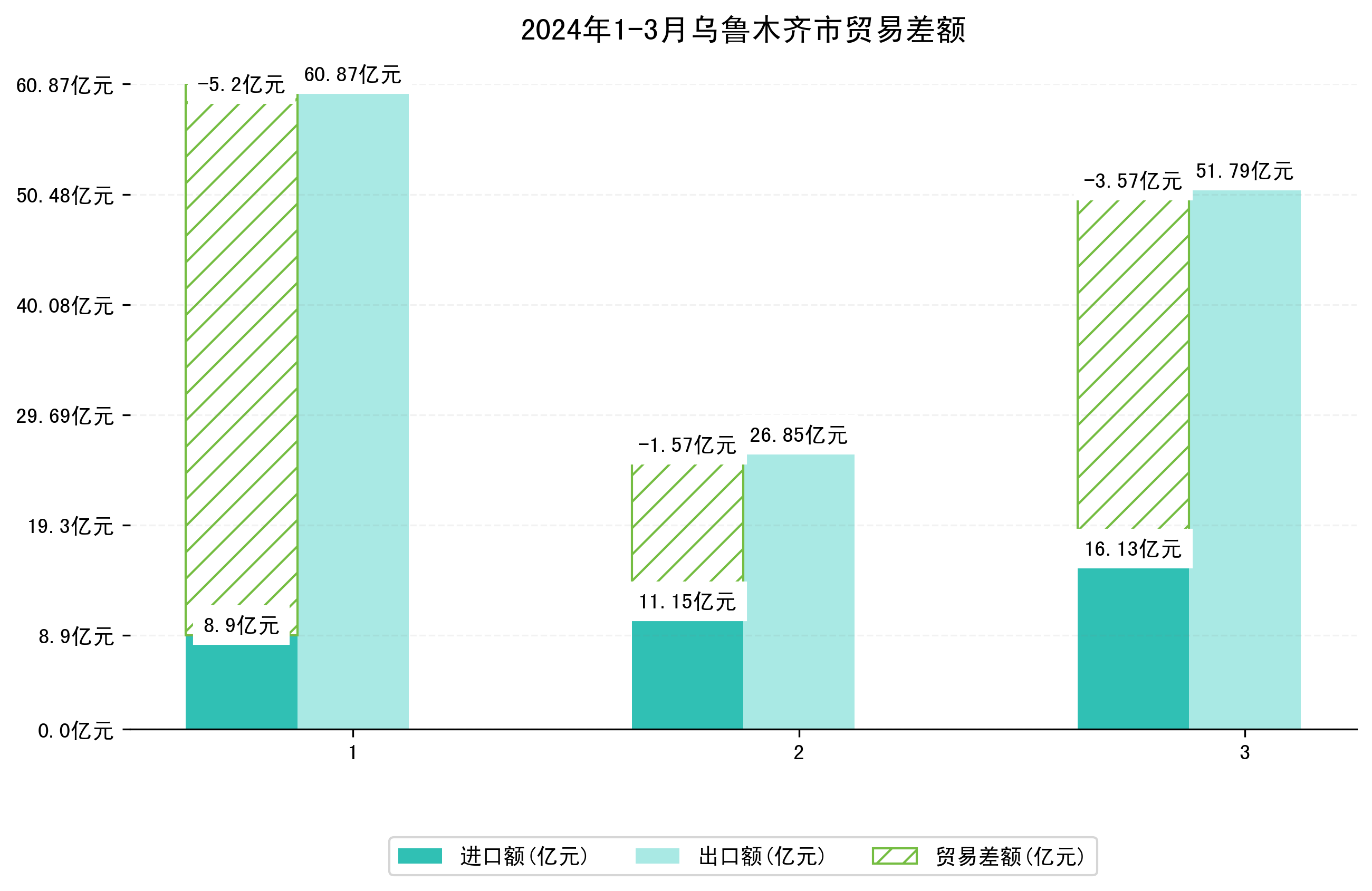 (图四:2024年1-3月乌鲁木齐市贸易差额)