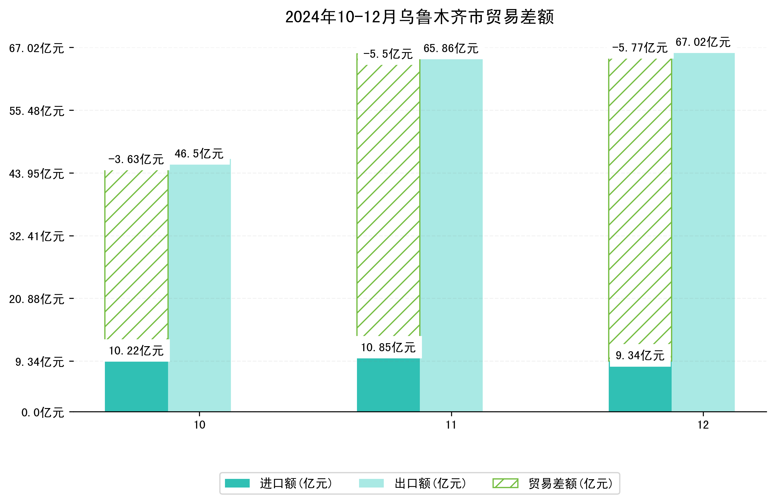 (图四:2024年10-12月乌鲁木齐市贸易差额)