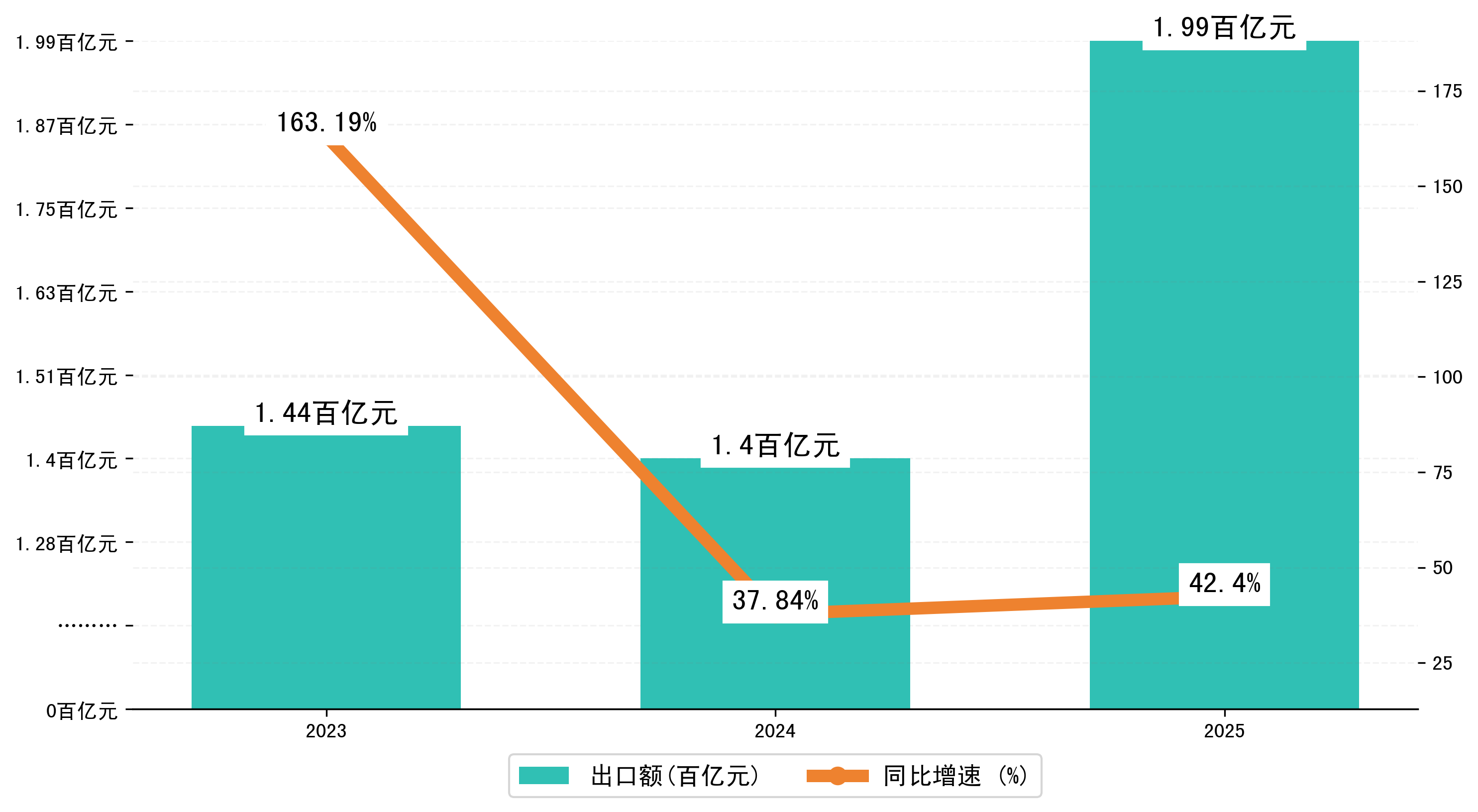 以人民币计,2025年1-3月乌鲁木齐市出口额为198,6862.0698万元,相比上年同期增加了59,1601.7479万元,同比增加了41.60%。