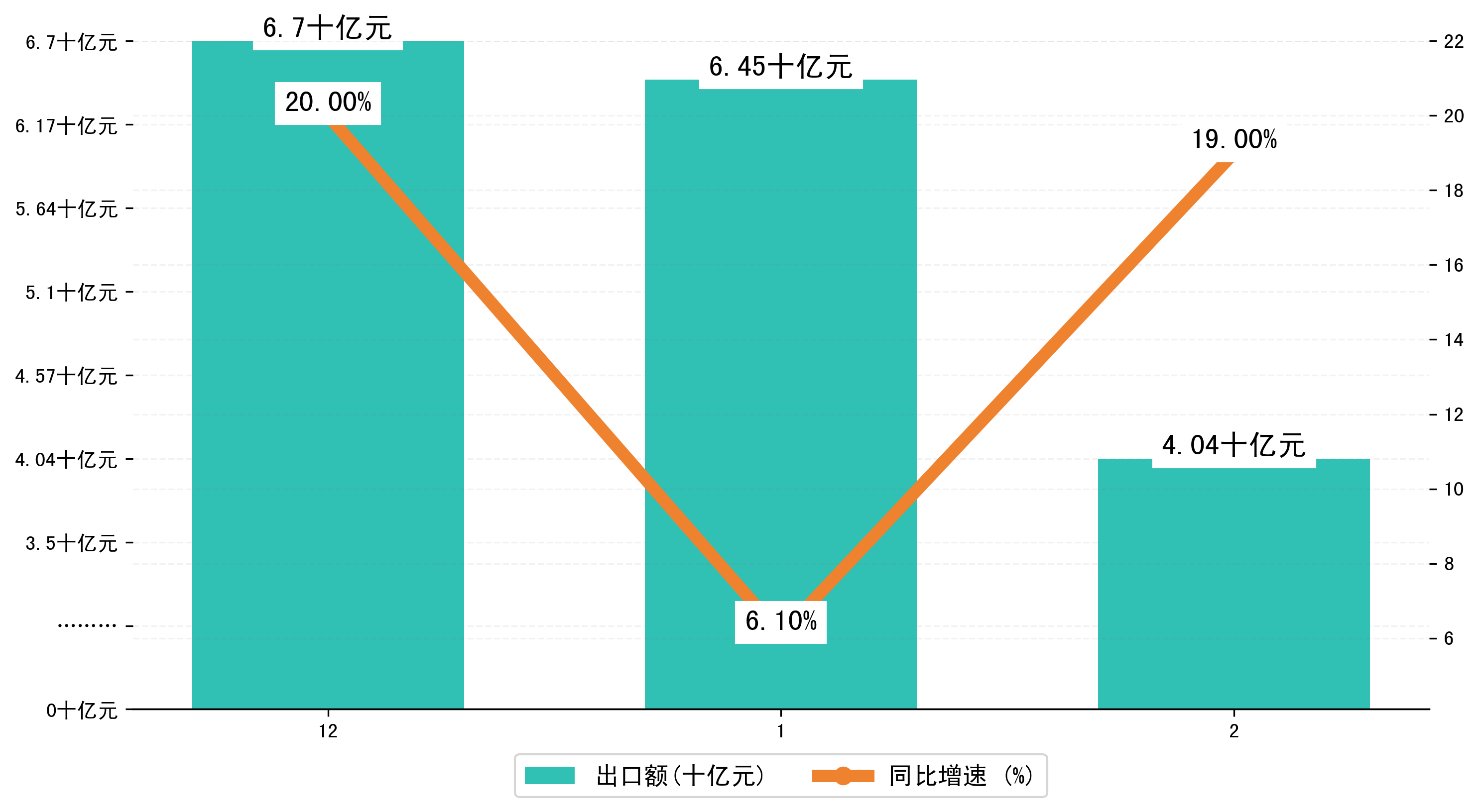 (图一:2025年12-2月乌鲁木齐市进出口总额)