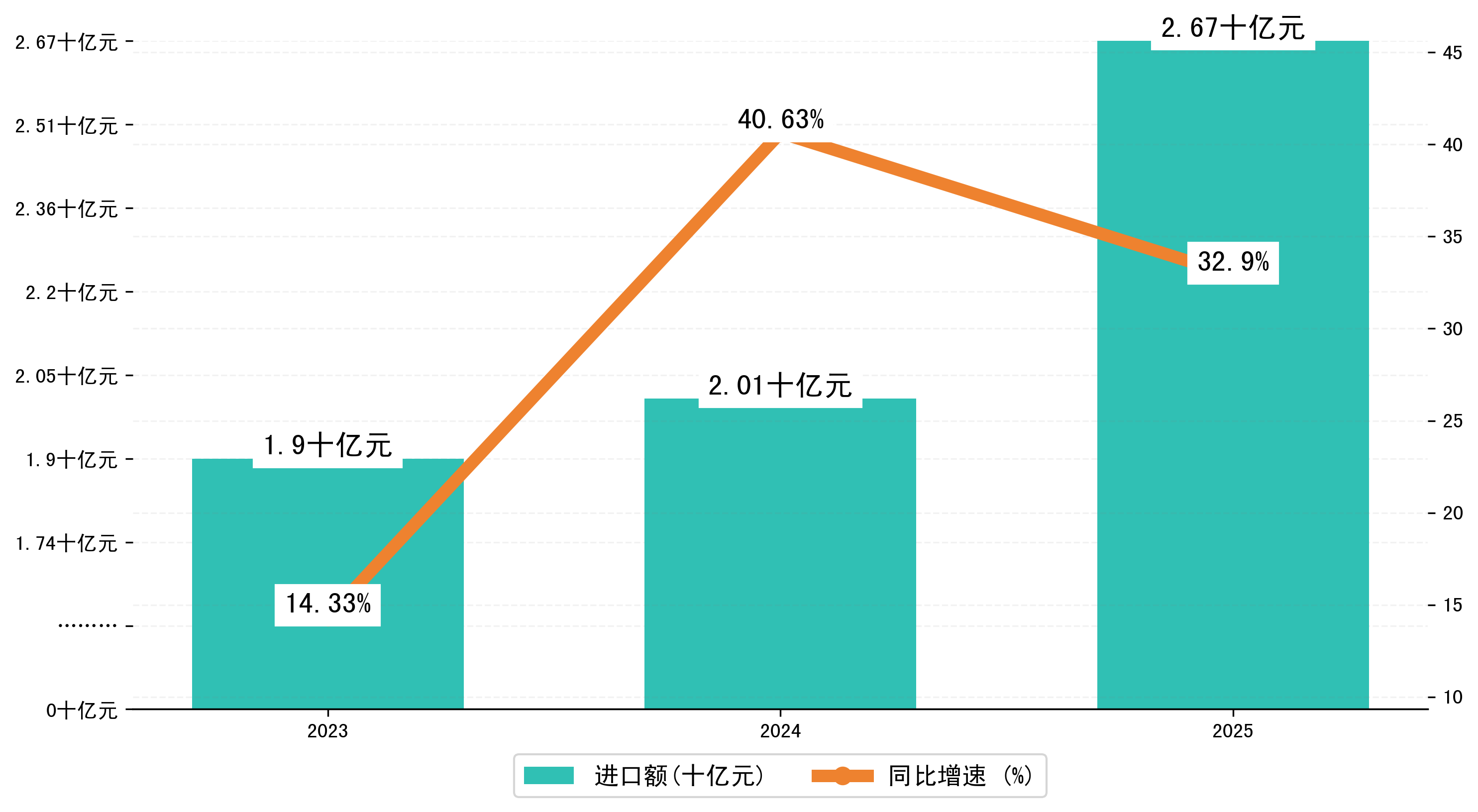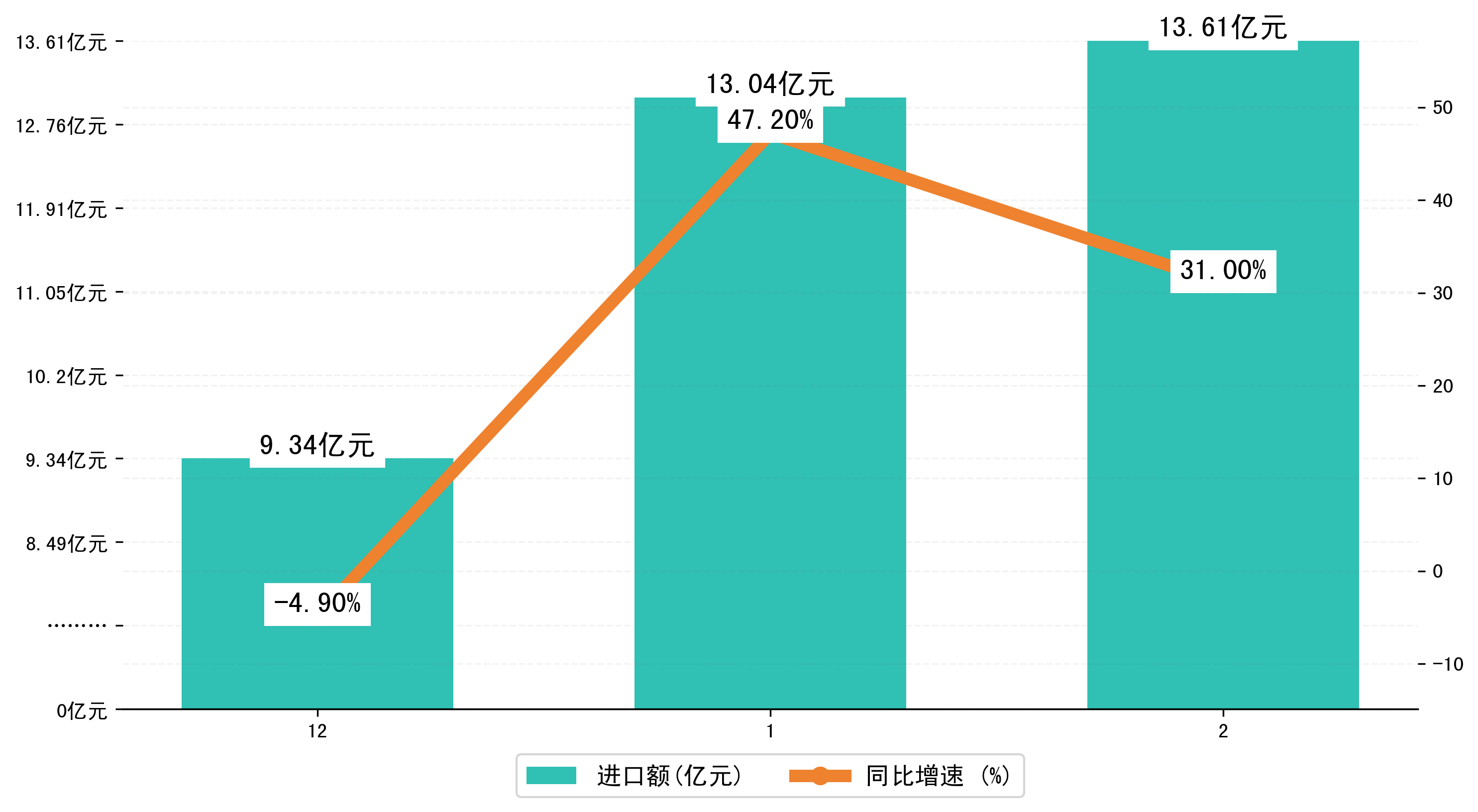 (图三:2025年12-2月乌鲁木齐市进口额)