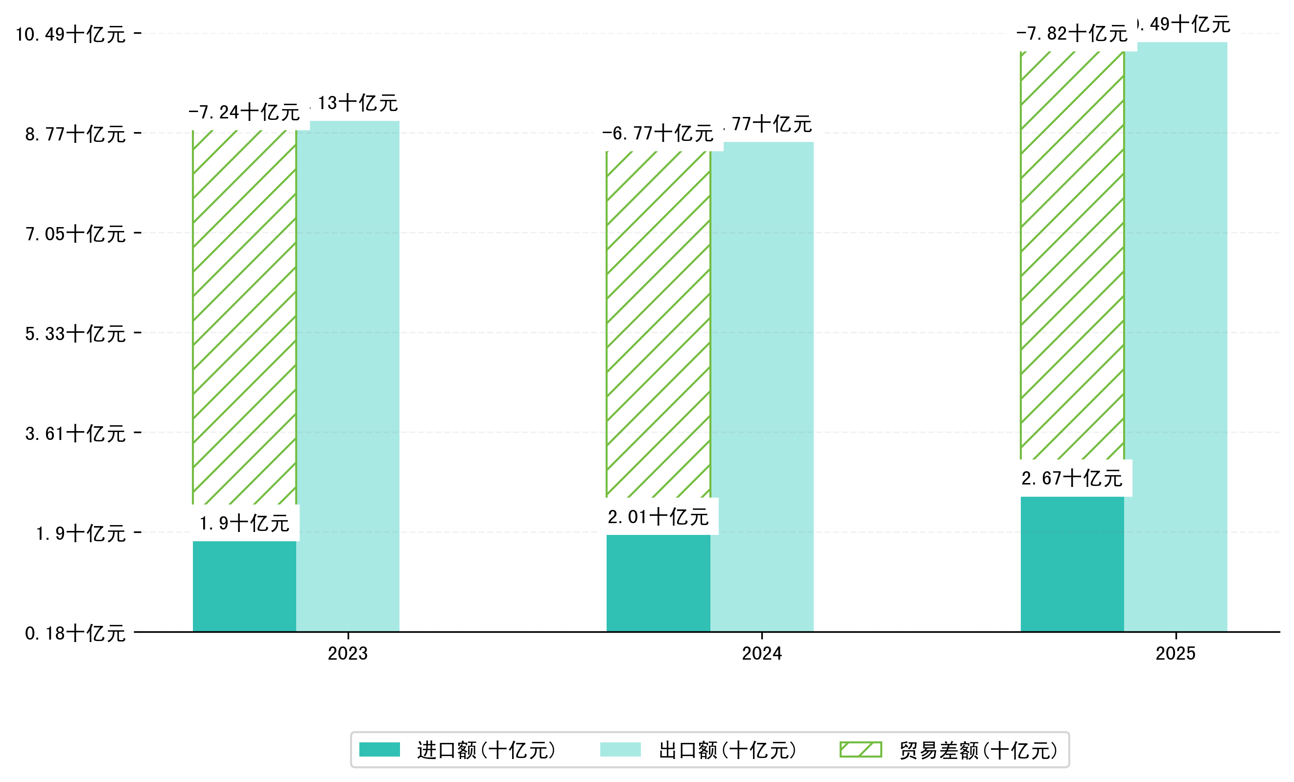 以人民币计,2025年2月乌鲁木齐市贸易差额为26,7406,4988万元(贸易顺差),相比上月减少了24,7654,5198万元,即3,4434,2625万美元;相比上年同期增加了11,0404,4926万元,同比增加70.32%。