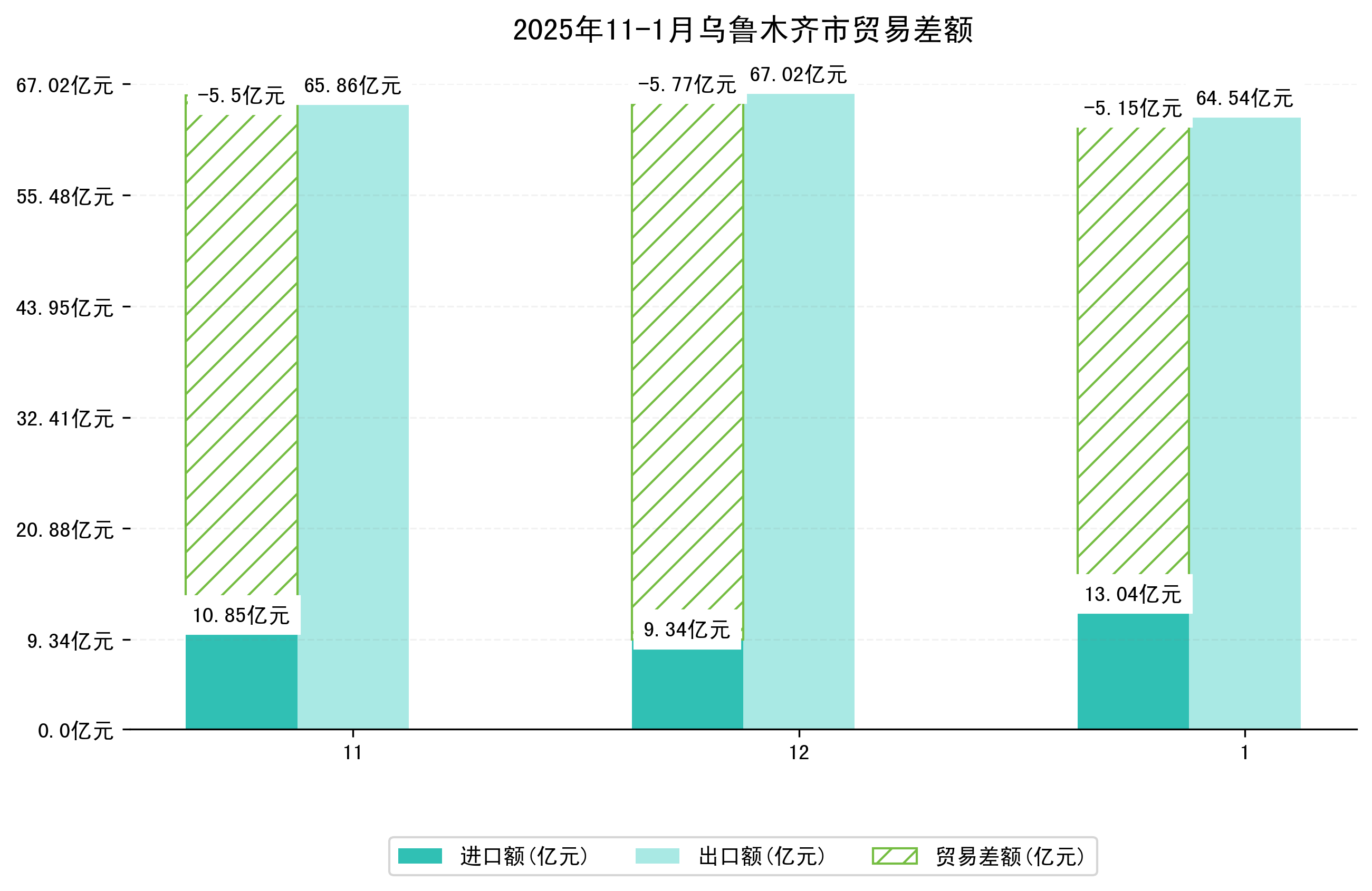 (图四:2025年11-1月乌鲁木齐市贸易差额)