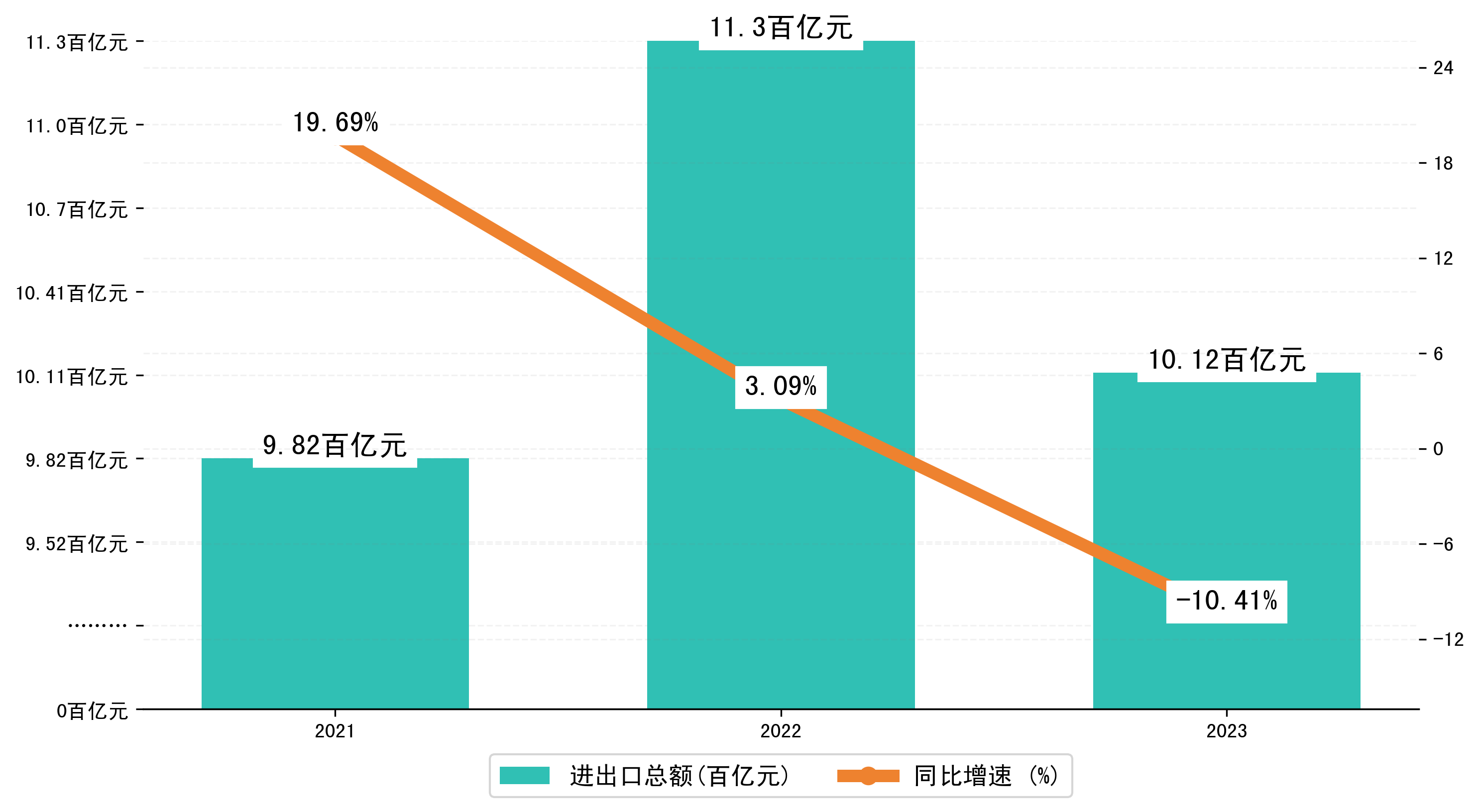 以人民币计,2023年1-2月无锡市进出口总额为1012,0288.4991万元,相比上年同期减少了117,5432.1214万元,同比减少了-10.40%。