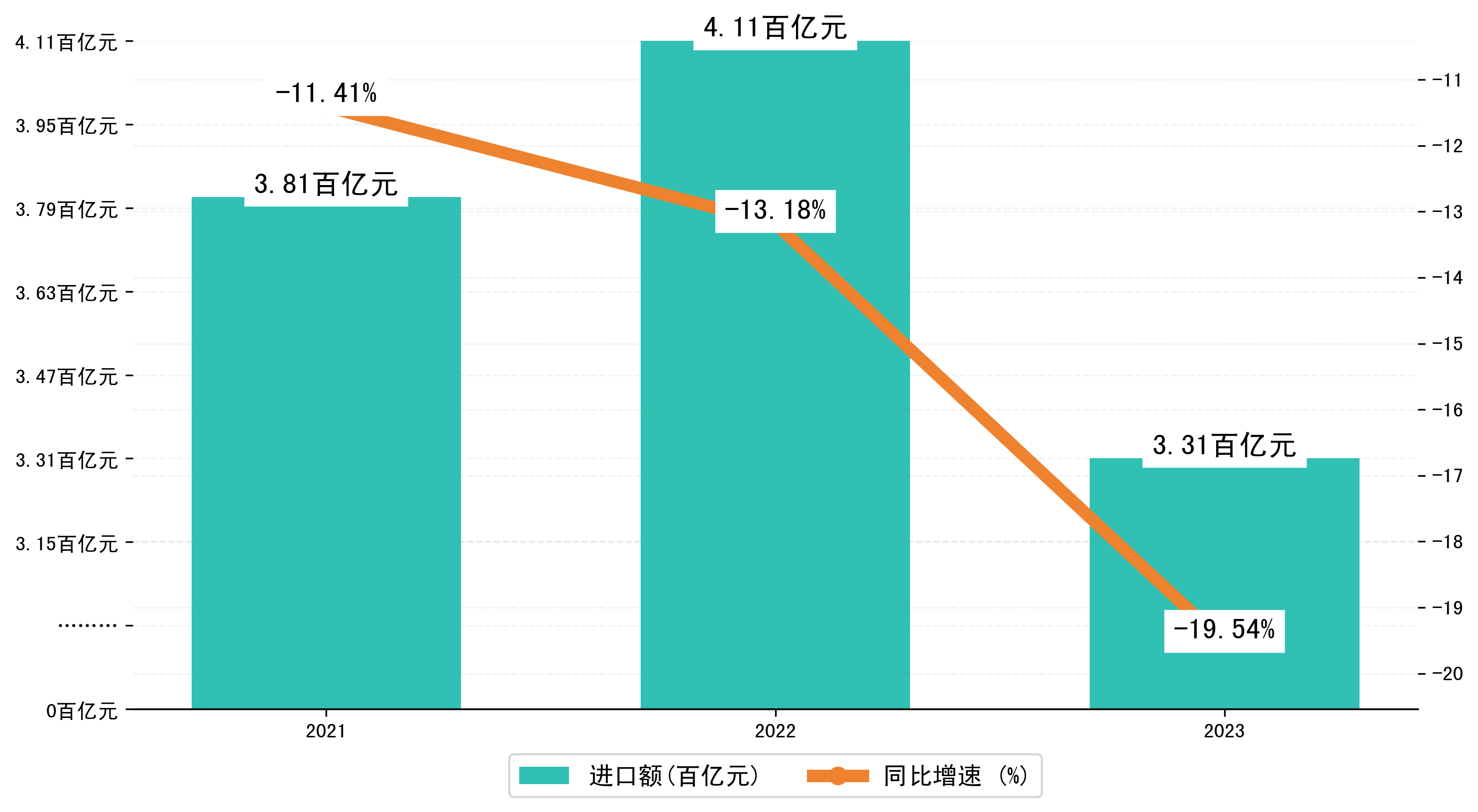 以人民币计,2023年1-2月无锡市进口额为330,6471.4535万元,相比上年同期减少了80,3241.8808万元,同比减少了-19.70%。
