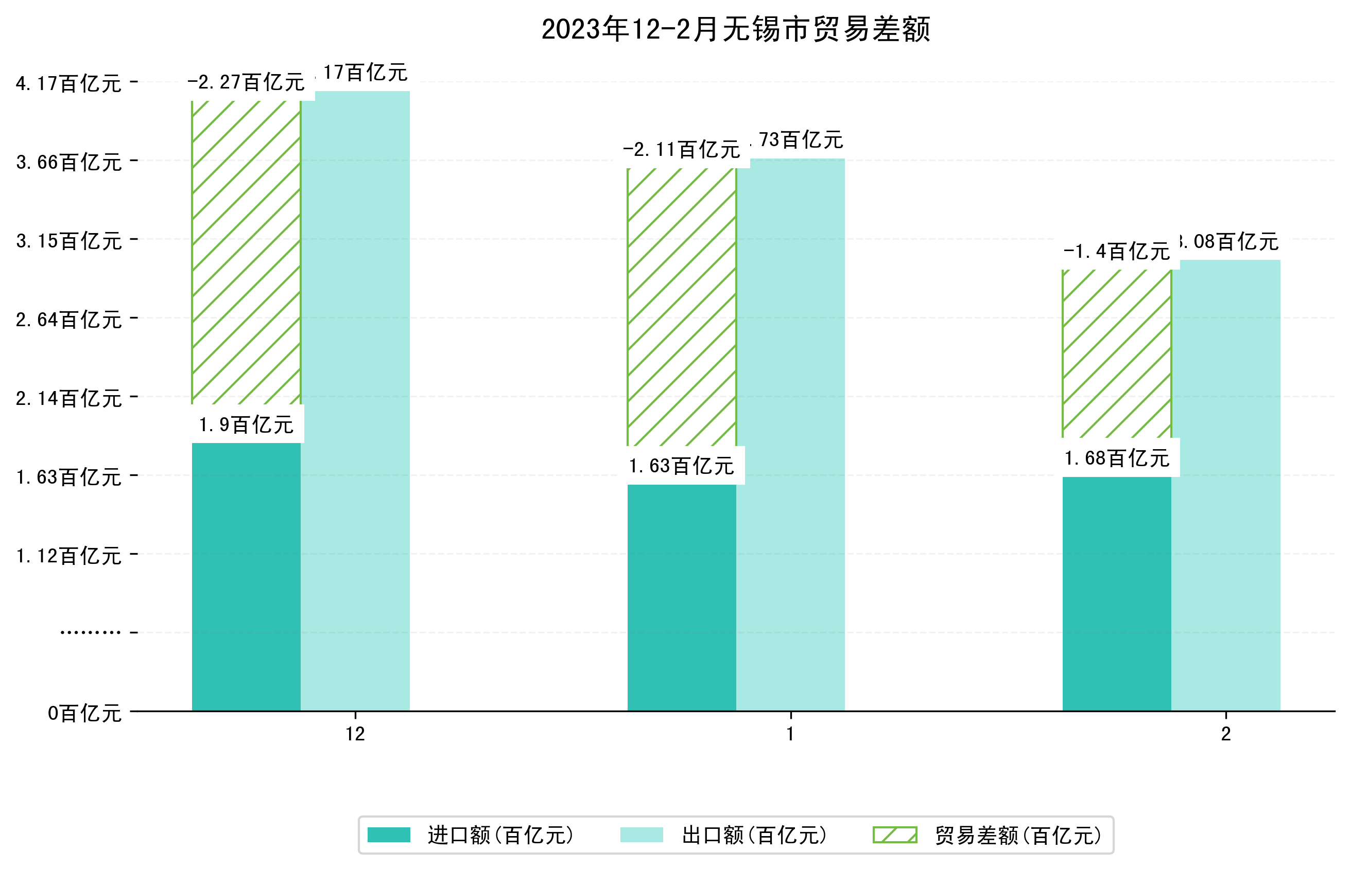 2023年2月无锡市进出口总额及进出口差额统计分析