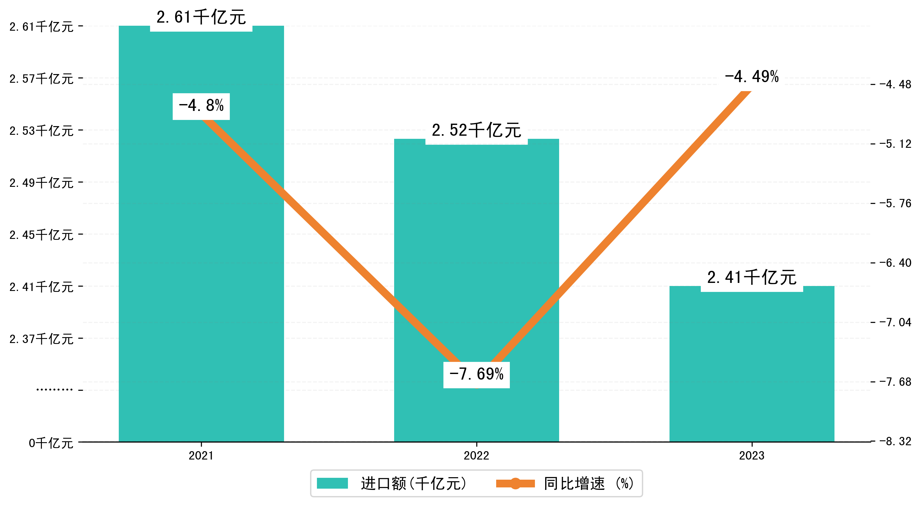 以人民币计,2023年12月无锡市进口额为233,2863.9597万元,相比上月增加了10,0474.5783万元;相比上年同期增加了43,7020.3781万元,同比减少了-4.50%。