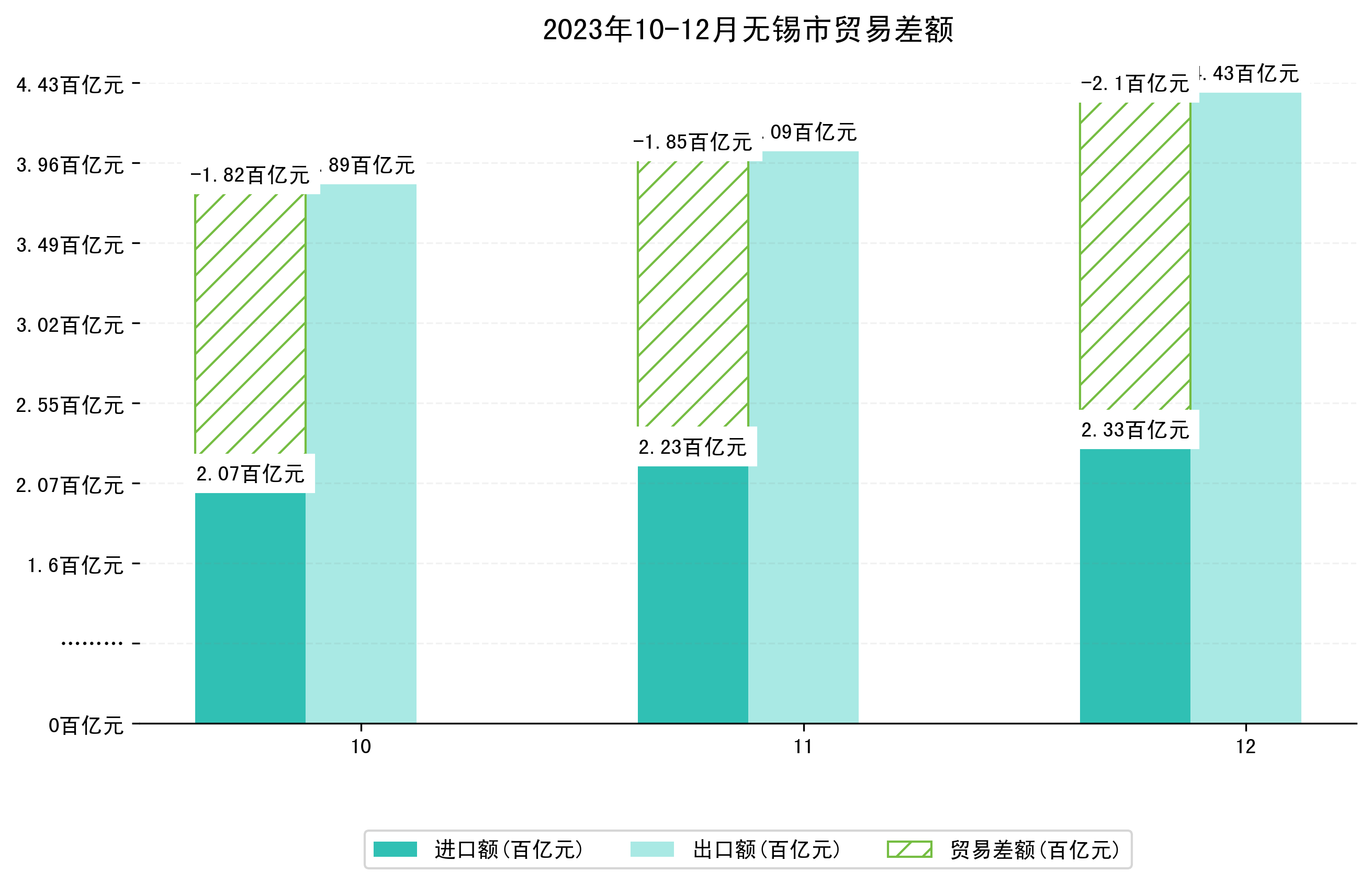 2023年12月无锡市进出口总额及进出口差额统计分析