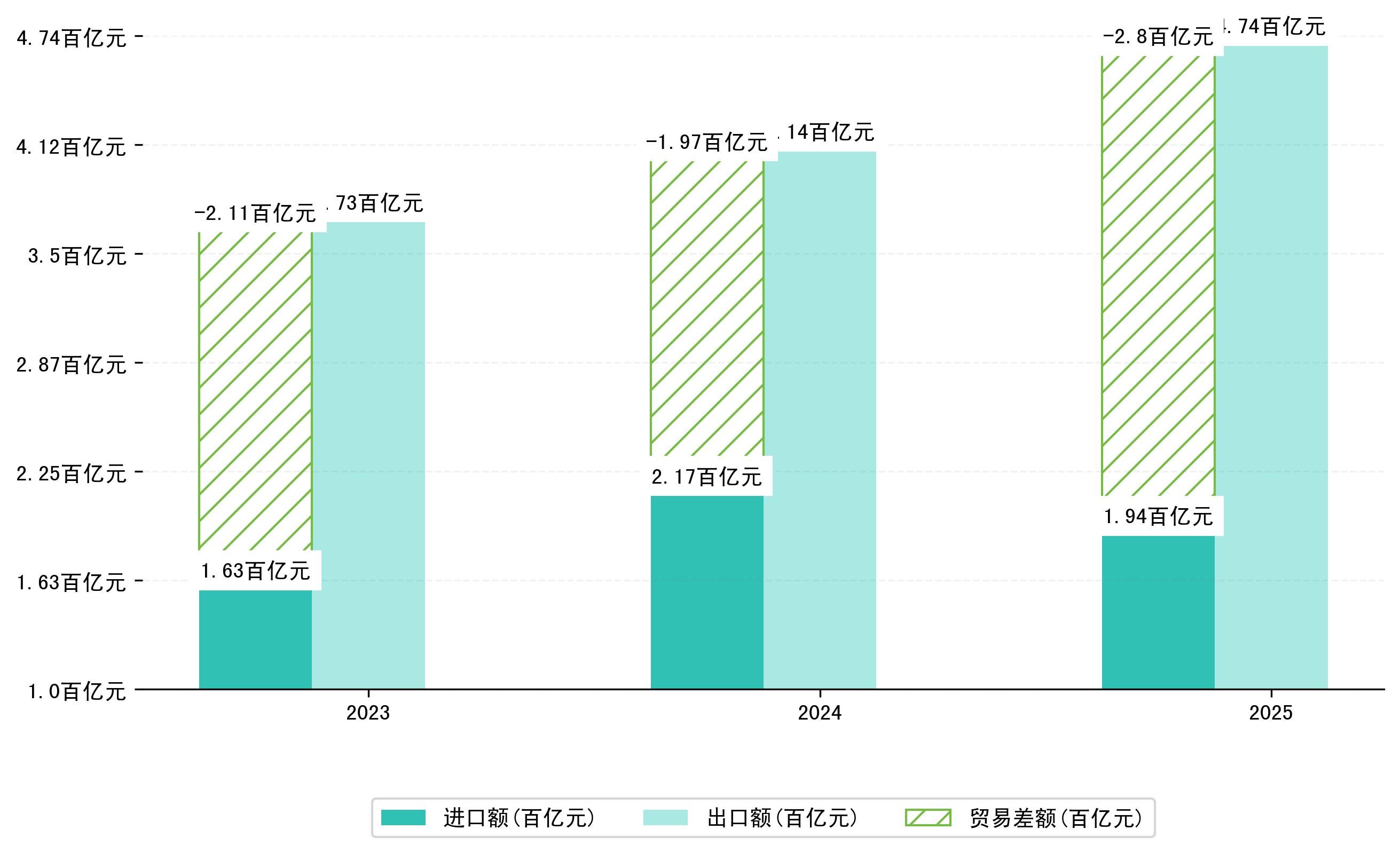 以人民币计,2025年1-1月无锡市贸易差额为280,4948,6032万元(贸易顺差),相比上年同期增加了83,1784,6392万元,同比增加42.15%。