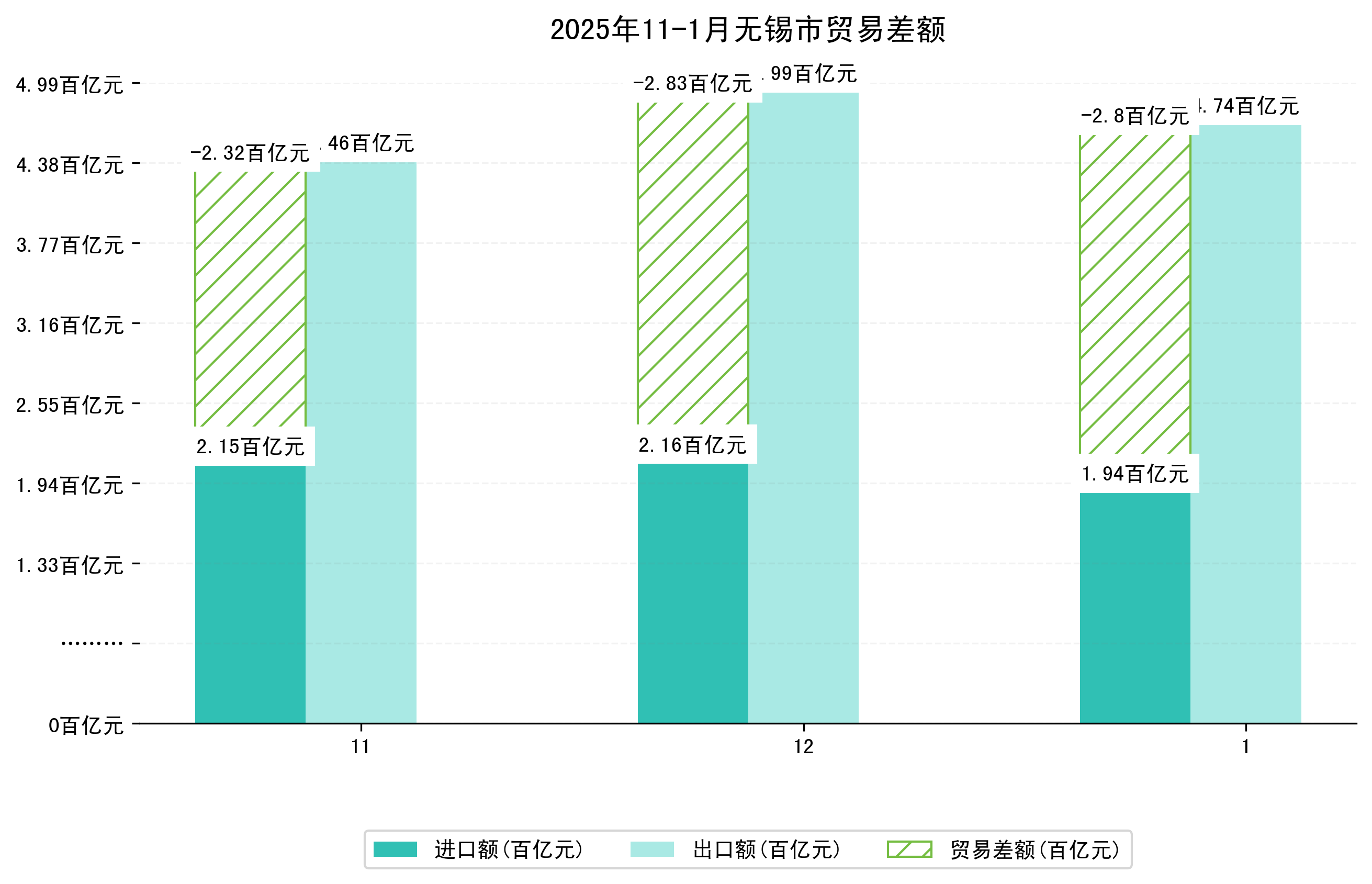 2025年1月无锡市进出口总额及进出口差额统计分析