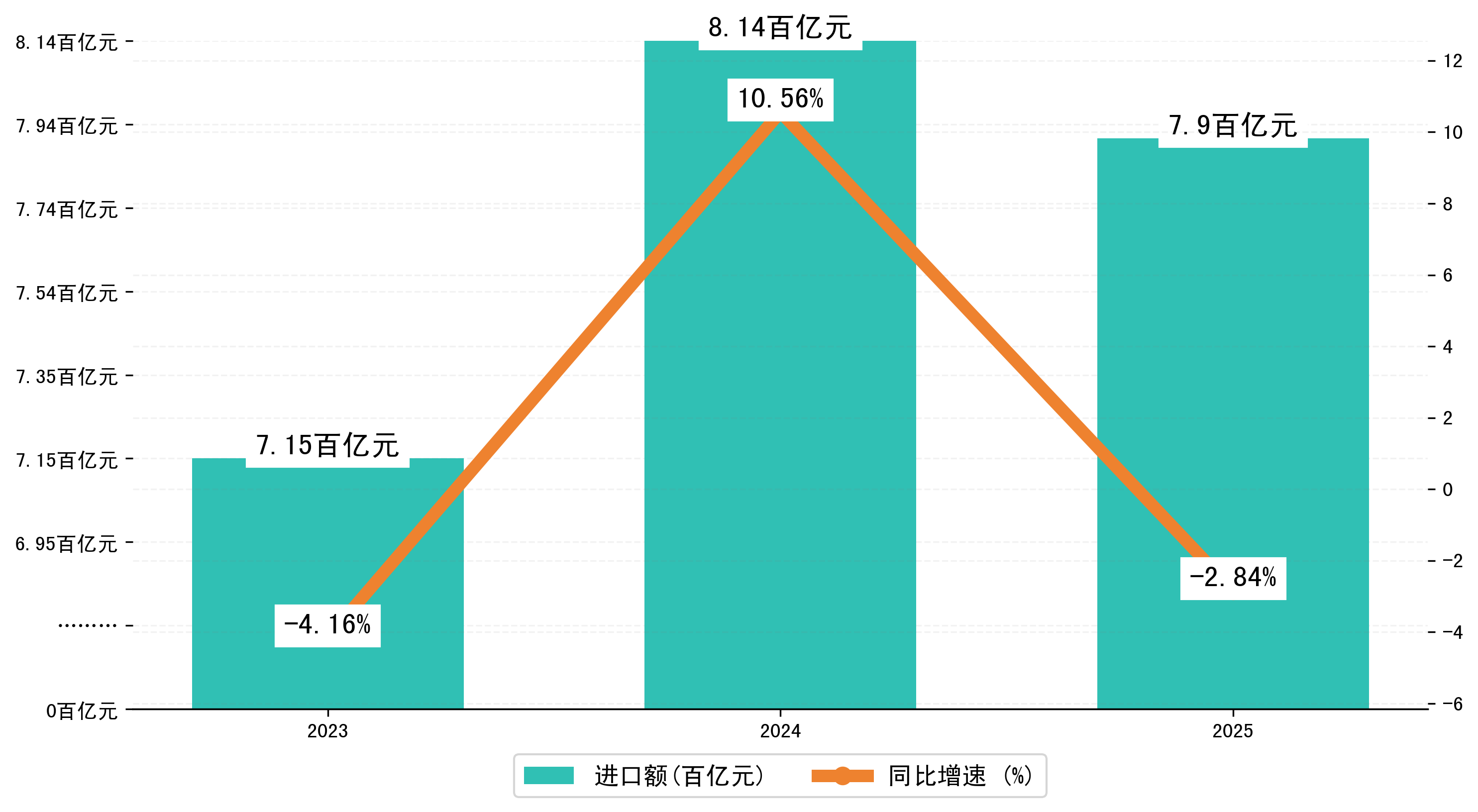 以人民币计,2025年1-4月无锡市进口额为790,4561.4714万元,相比上年同期减少了23,0692.2429万元,同比减少了-2.80%。
