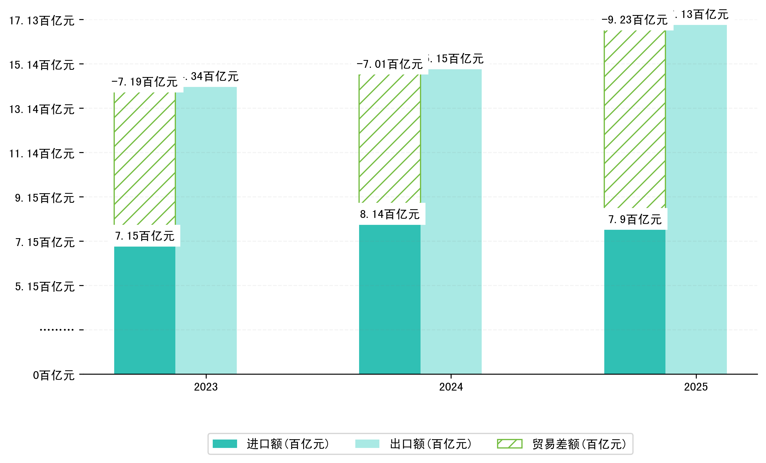 以美元计,2025年1-4月无锡市贸易差额为128,4861,8157万美元(贸易顺差),相比上年同期增加了29,8445,9494万美元,同比增加30.26%。