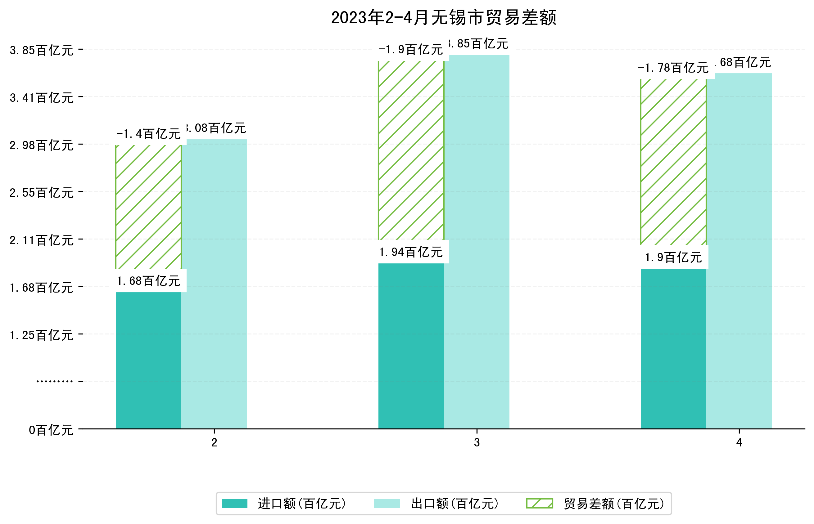 (图四:2023年2-4月无锡市贸易差额)