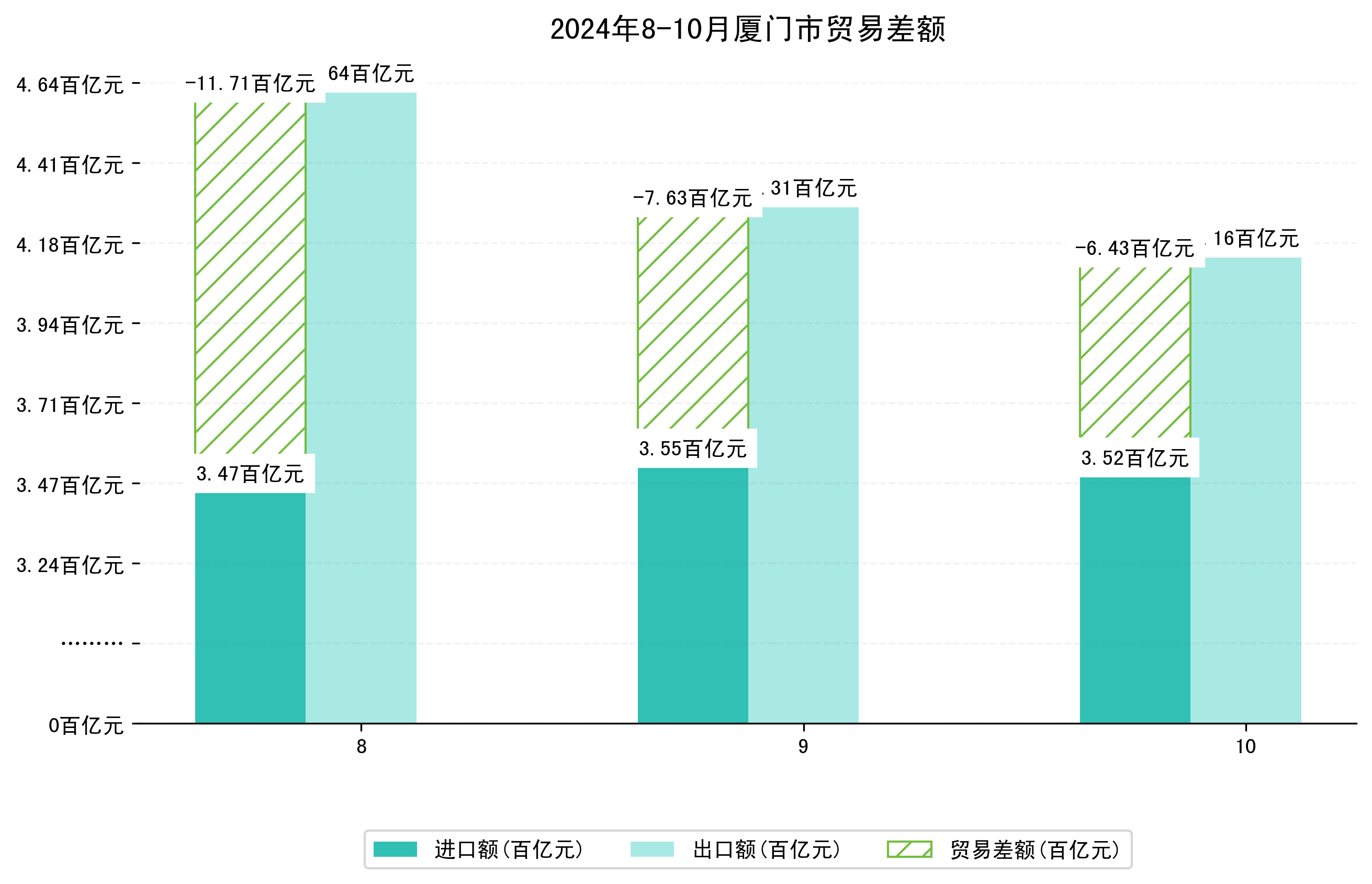 2024年10月厦门市进出口总额及进出口差额统计分析