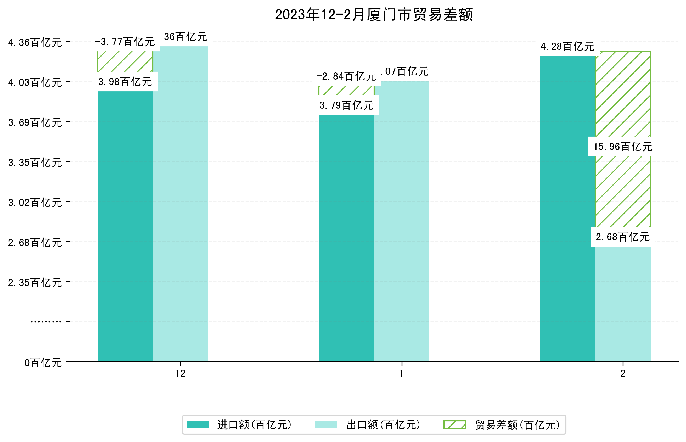 (图四:2023年12-2月厦门市贸易差额)