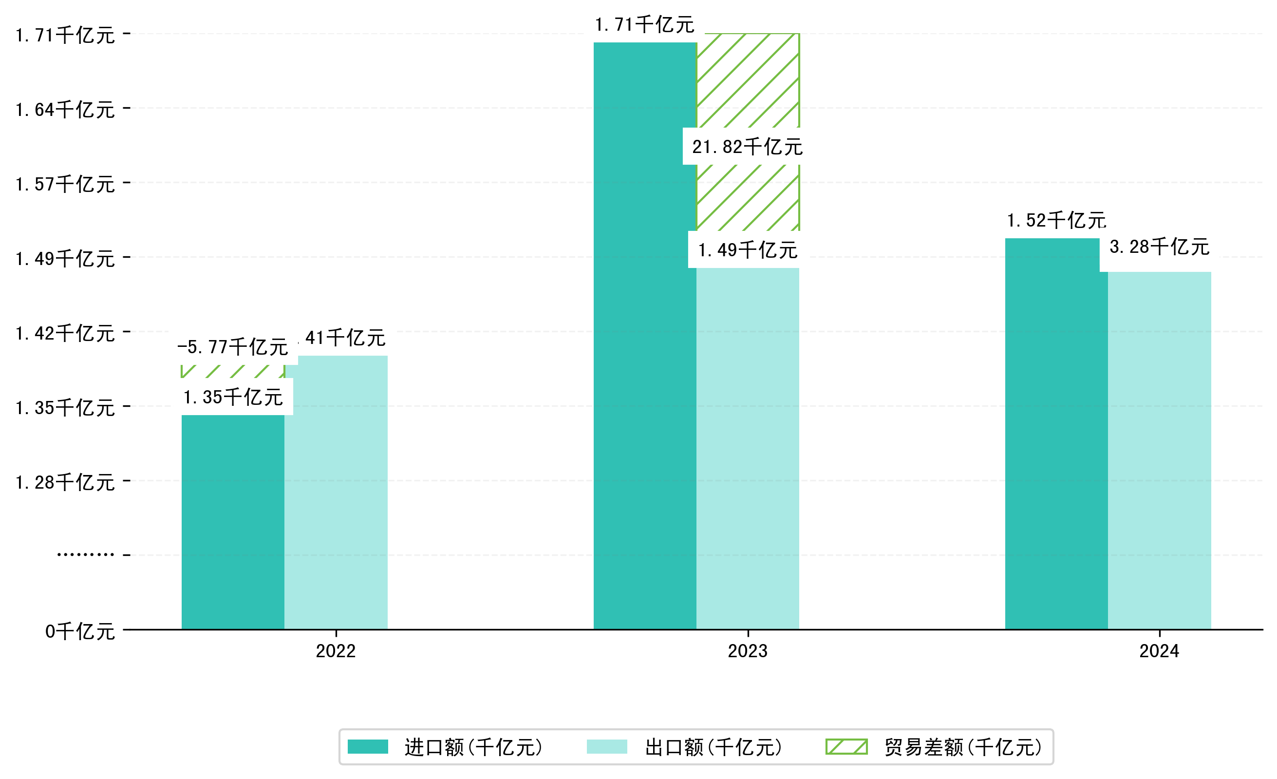 以美元计,2024年1-4月厦门市贸易差额为4,6083,7089万美元(贸易逆差),相比上年同期增加了27,3127,9840万美元,同比增加-85.56%。
