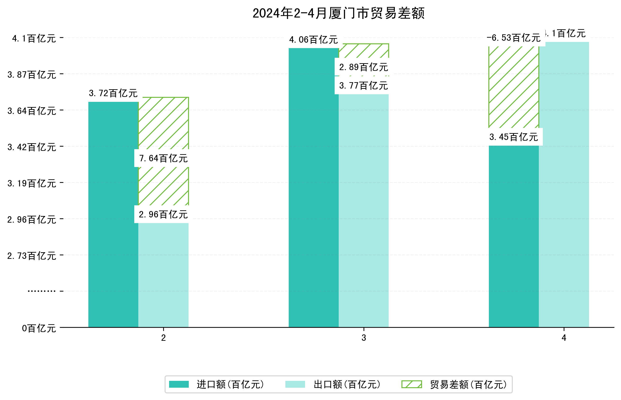 2024年4月厦门市进出口总额及进出口差额统计分析