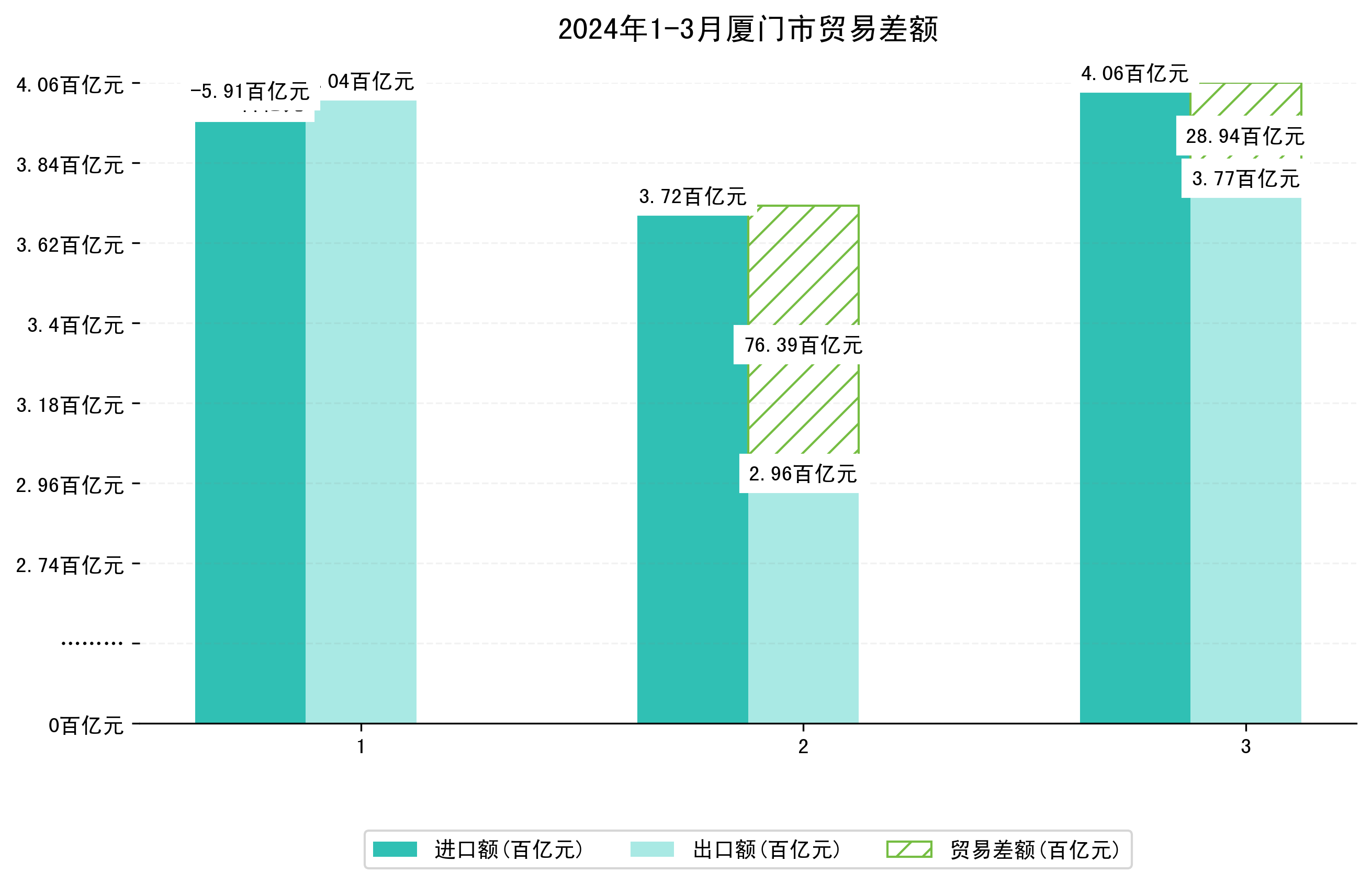2024年3月厦门市进出口总额及进出口差额统计分析