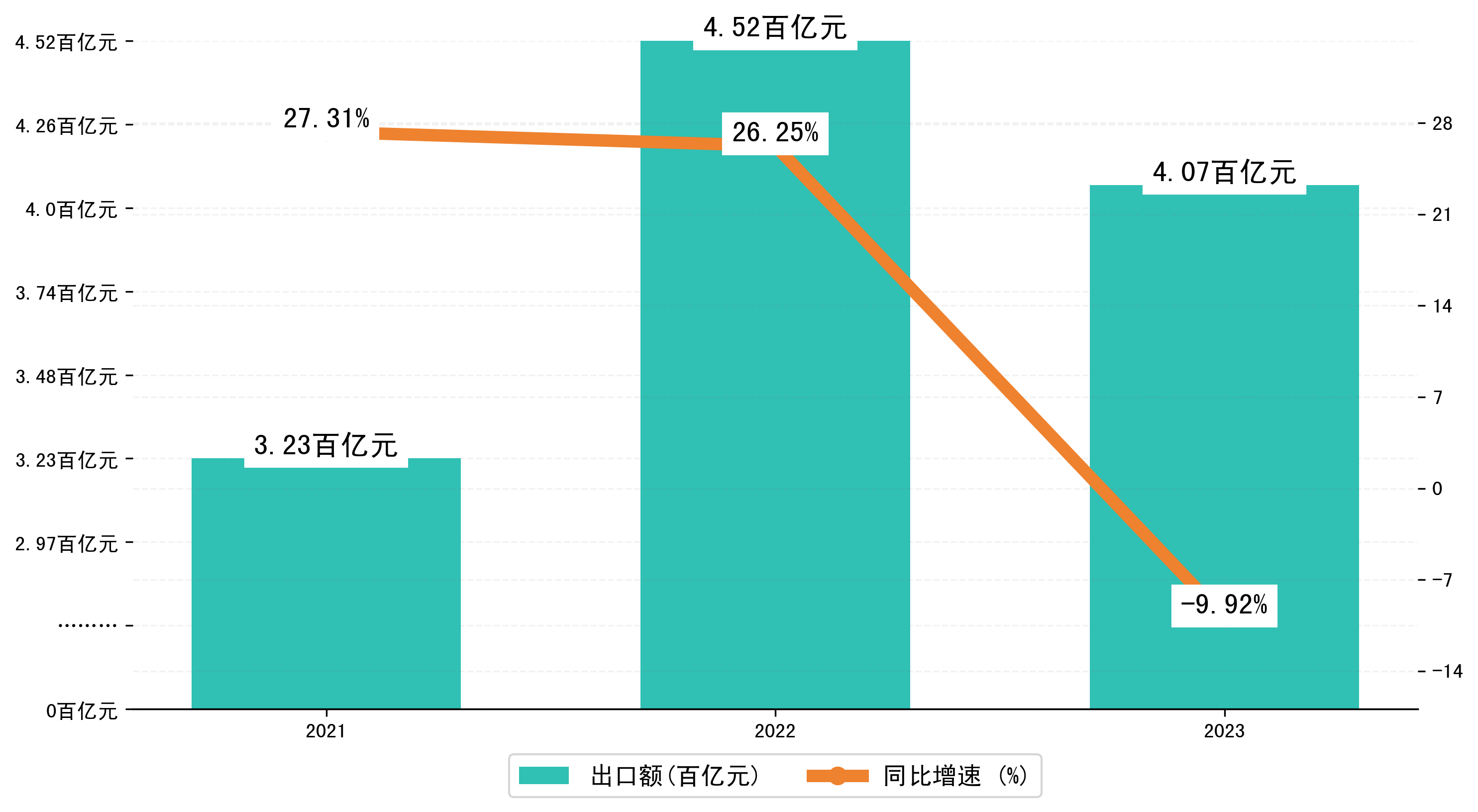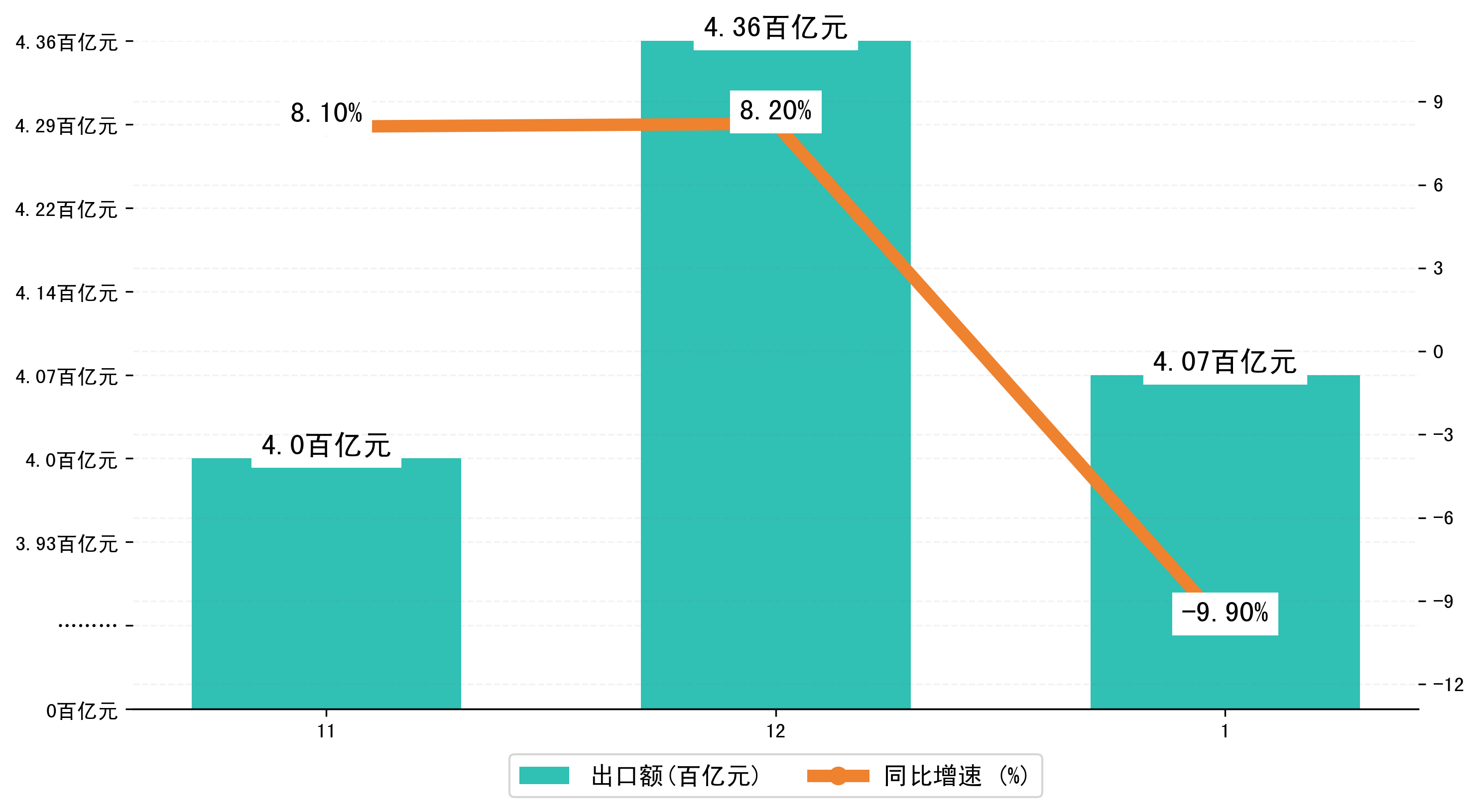以人民币计,2023年1月厦门市出口额为407,1907.7079万元,相比上月减少了28,9101.3604万元;相比上年同期减少了44,8386.1798万元,同比减少了-9.90%。