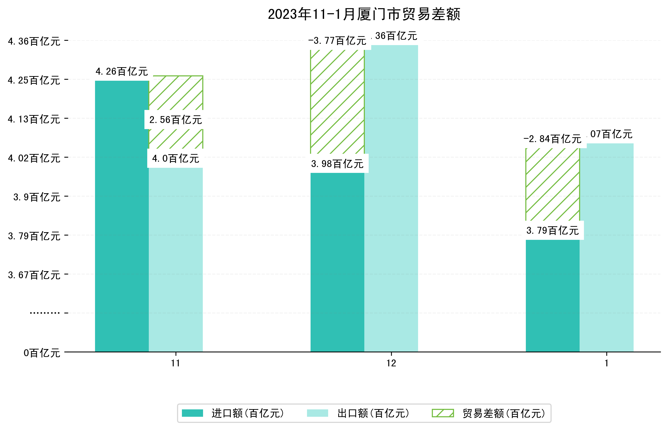 2023年1月厦门市进出口总额及进出口差额统计分析