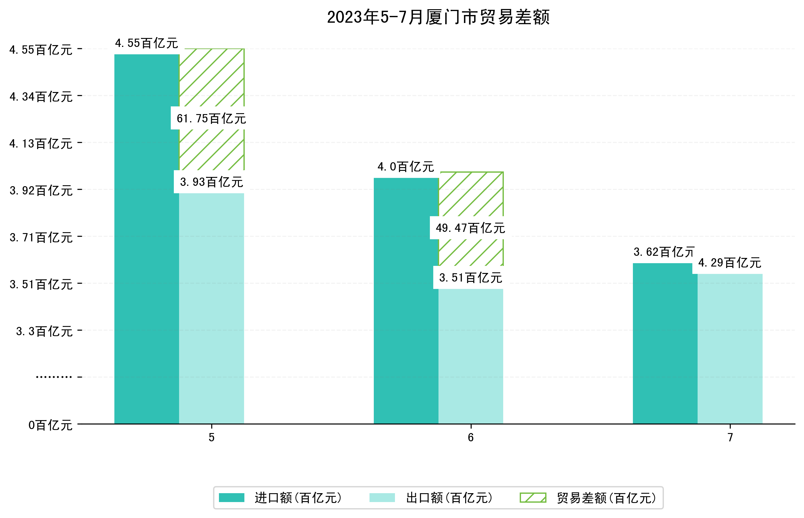 2023年7月厦门市进出口总额及进出口差额统计分析