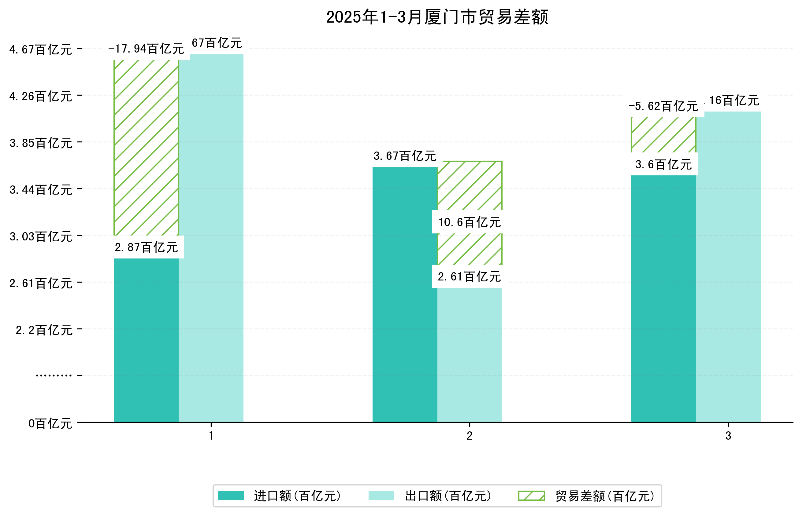 (图四:2025年1-3月厦门市贸易差额)