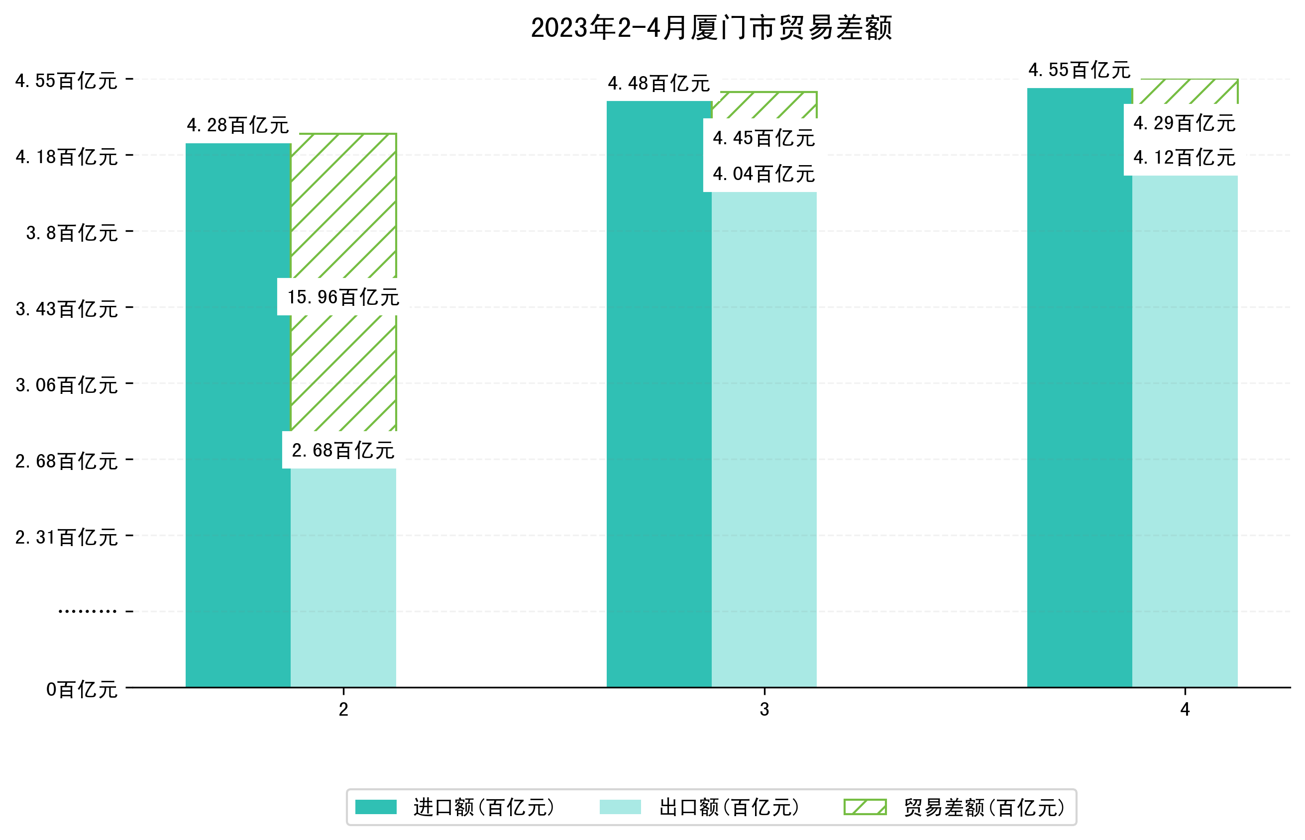 (图四:2023年2-4月厦门市贸易差额)
