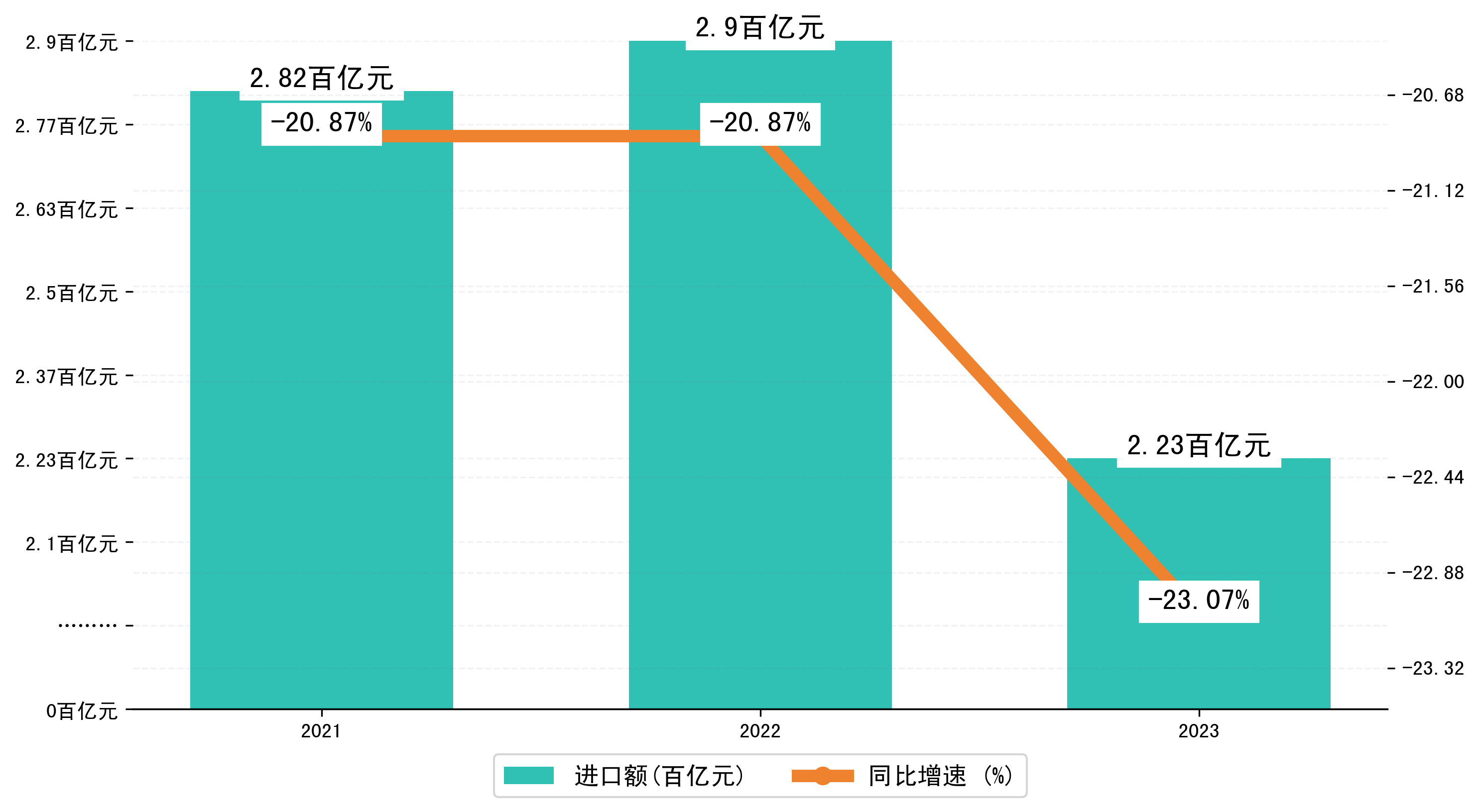以人民币计,2023年1-2月西安市进口额为223,2286.0261万元,相比上年同期减少了66,9467.4479万元,同比减少了-23.50%。