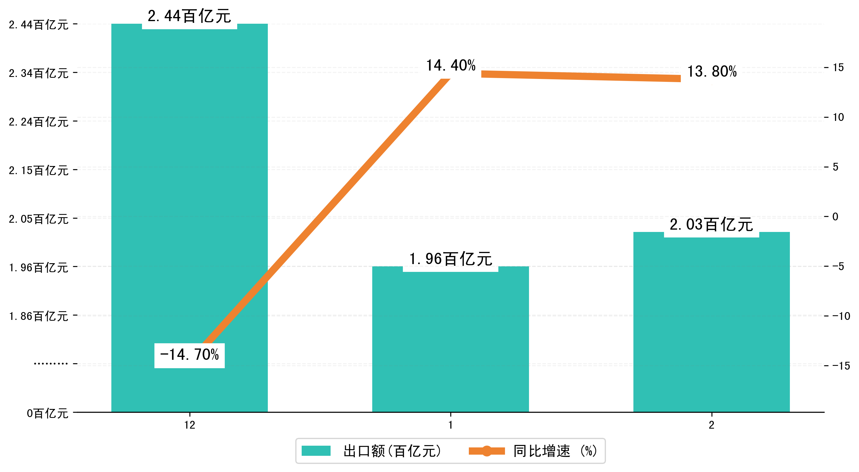 以人民币计,2024年1-2月西安市出口额为398,3570.4305万元,相比上年同期增加了48,3451.1312万元,同比增加了13.80%。