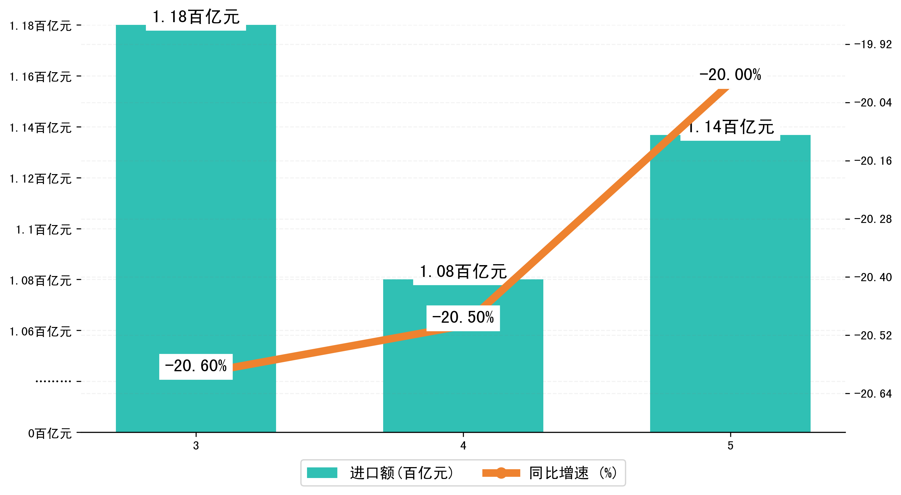 以美元计,2023年5月西安市进口额为16,5163.6174万美元,相比上月增加了8178.6184万美元;相比上年同期减少了5,3860.7058万美元,同比减少-25.70%。