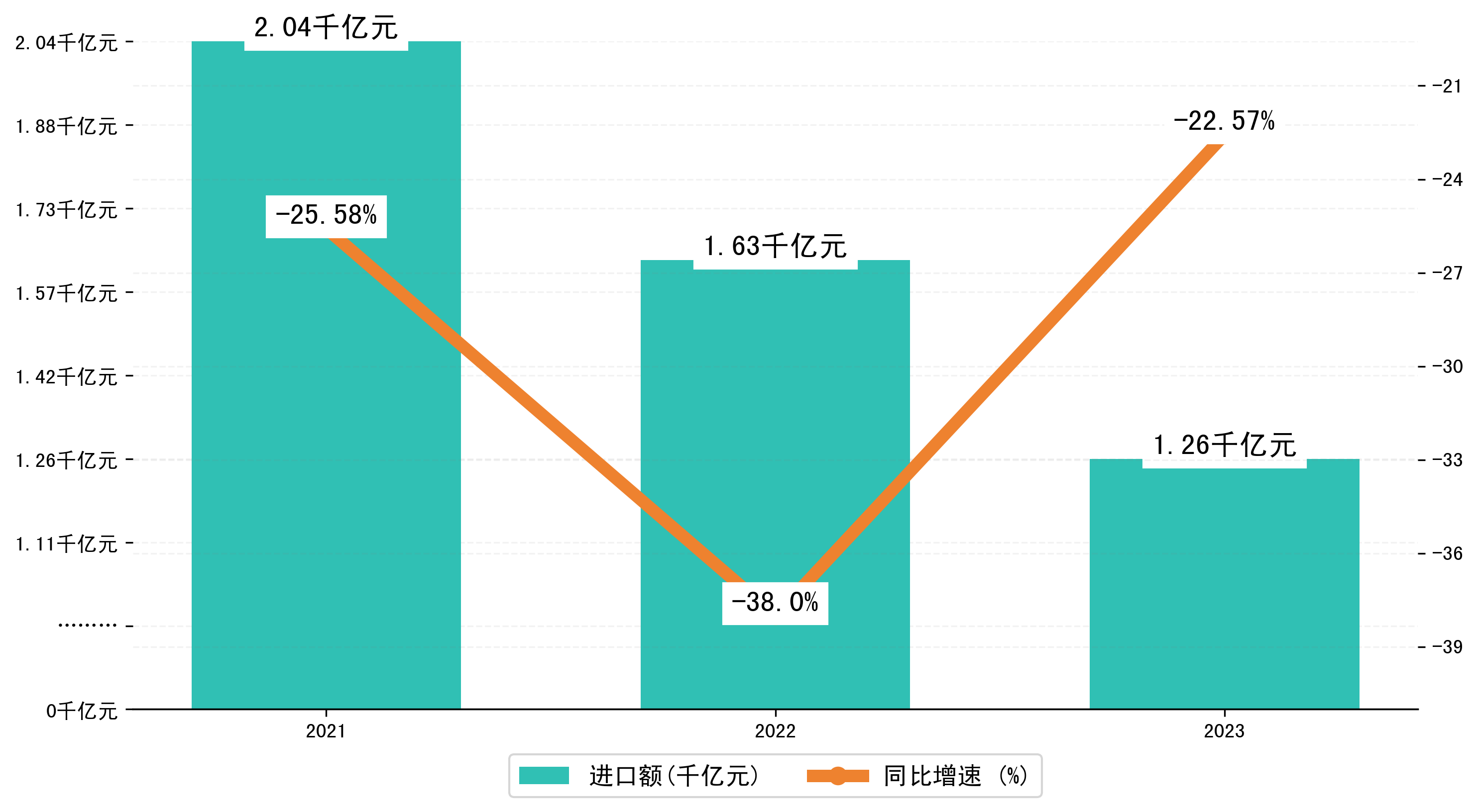 以人民币计,2023年1-12月西安市进口额为1263,5970.6581万元,相比上年同期减少了368,4114.0962万元,同比减少了-22.10%。