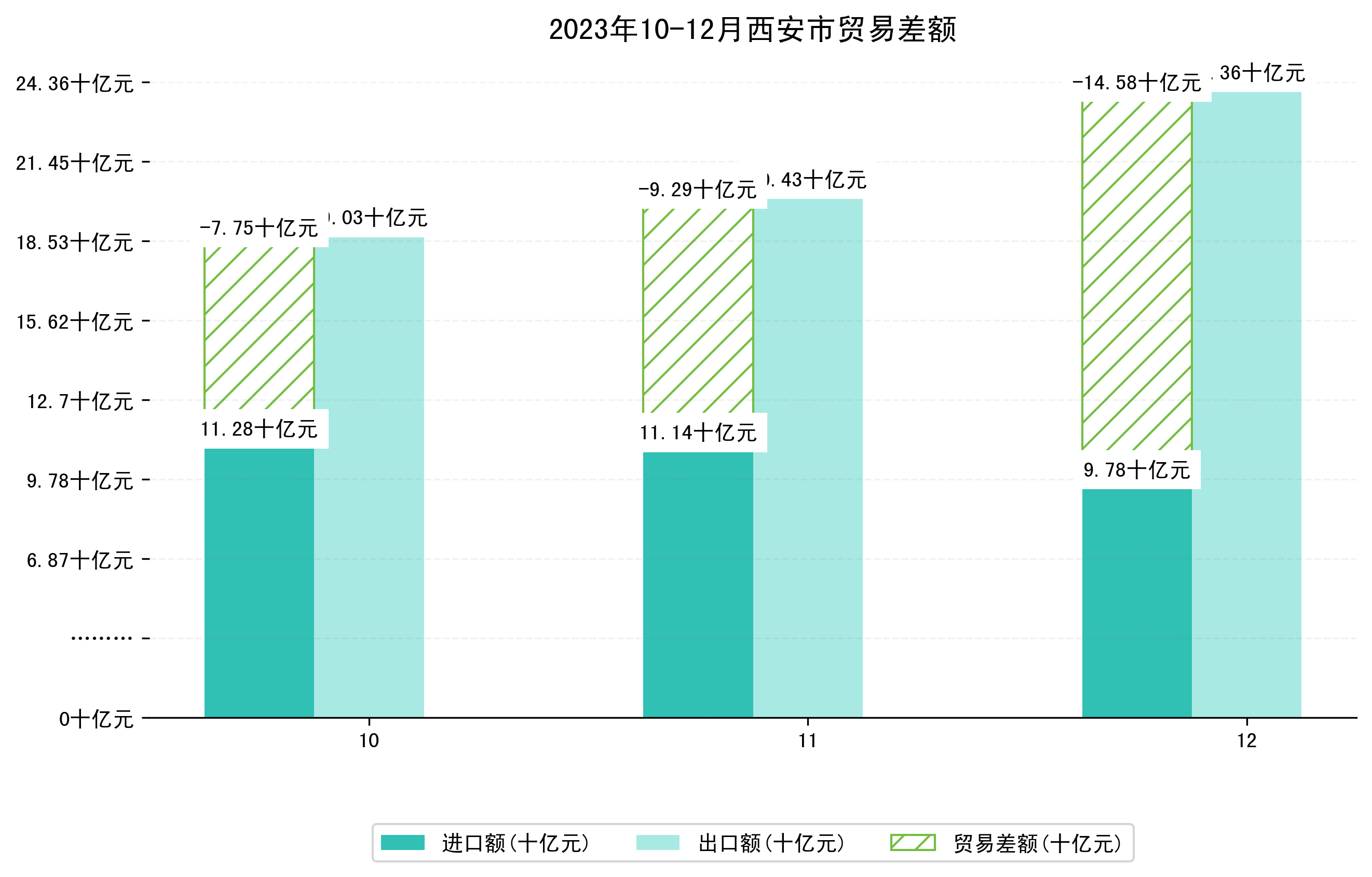 一、2023年12月西安市单月出口总额及进出口差额统计分析