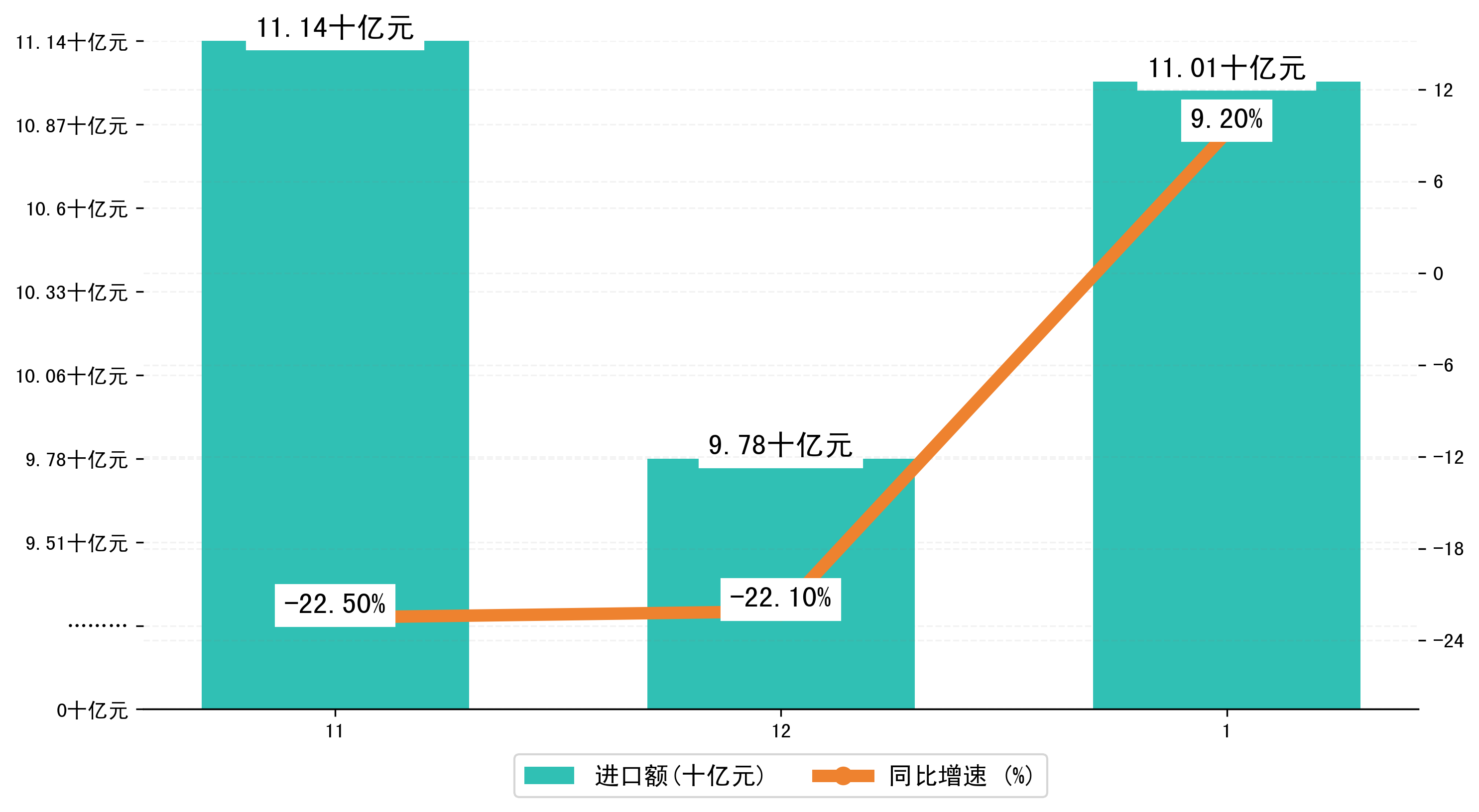 以人民币计,2024年1月西安市进口额为110,1279.2638万元,相比上月增加了12,2786.4937万元;相比上年同期增加了9,4082.0892万元,同比增加了9.20%。