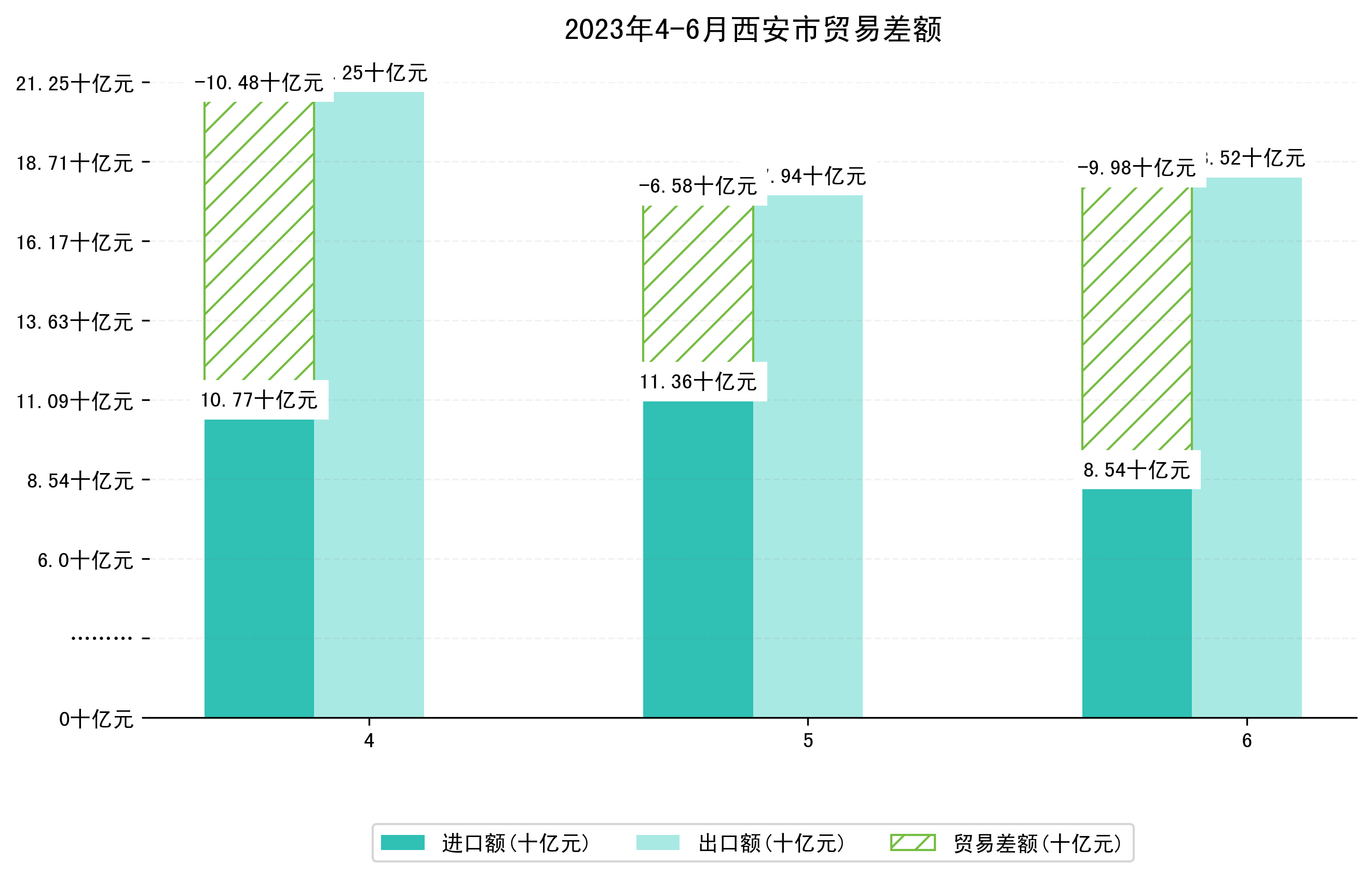 以人民币计,2023年6月西安市贸易差额为99,7517,9599万元(贸易顺差),相比上月增加了33,9283,8799万元,即4,7000,0328万美元;相比上年同期增加了3,5243,9381万元,同比增加3.66%。
