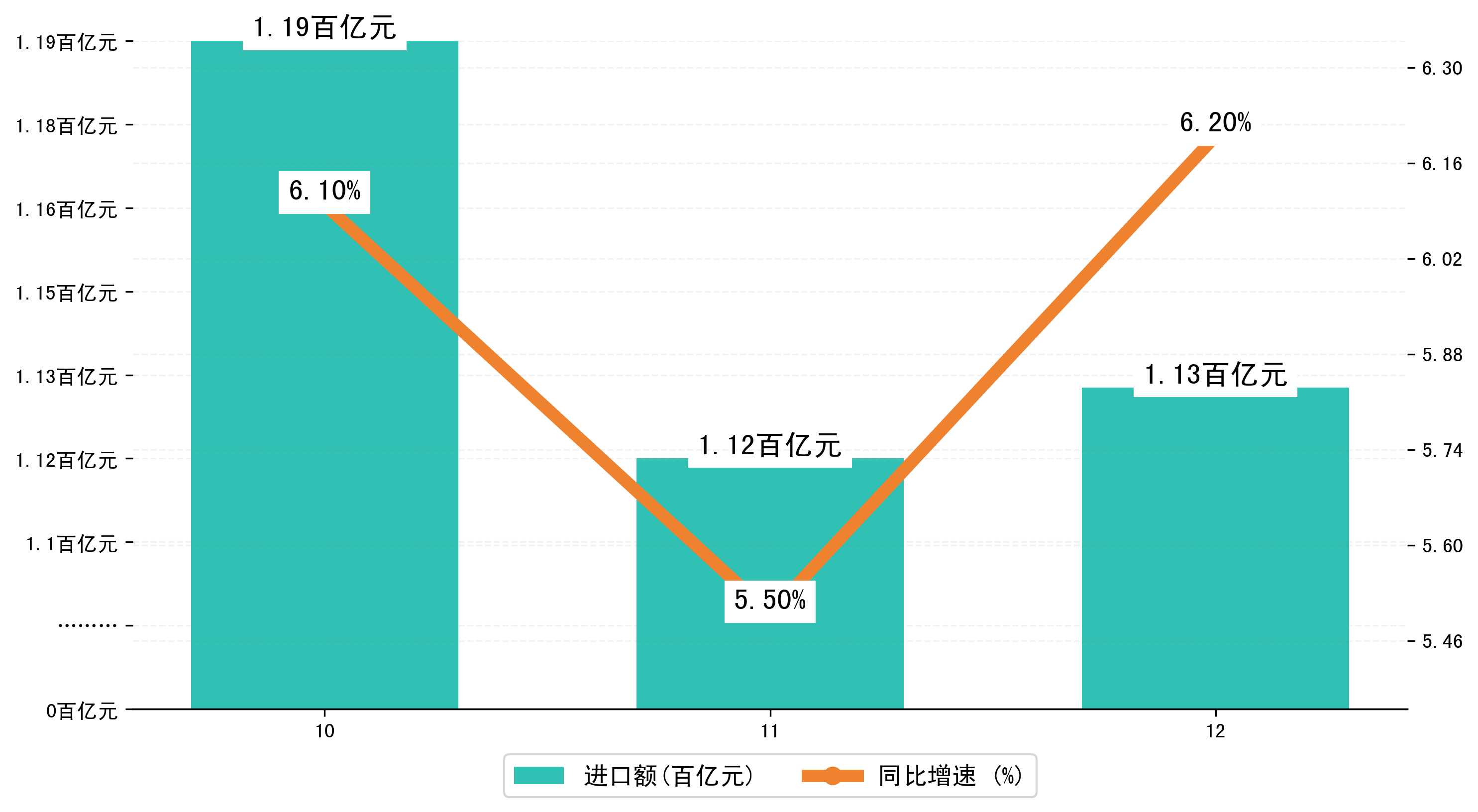 以人民币计,2024年1-12月西安市进口额为1342,2256.2496万元,相比上年同期增加了78,6285.5915万元,同比增加了6.20%。