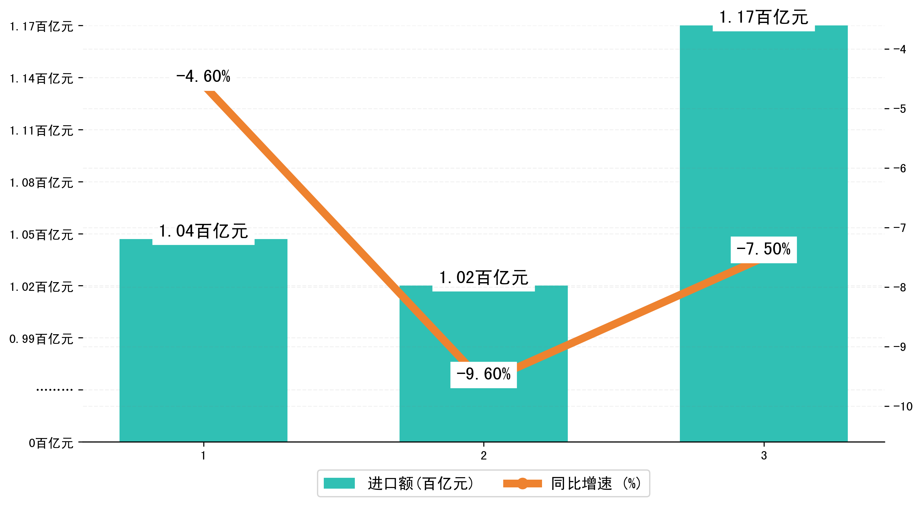 以人民币计,2025年3月西安市进口额为117,3318.5391万元,相比上月增加了15,6755.6531万元;相比上年同期减少了4,7161.1642万元,同比减少了-7.50%。