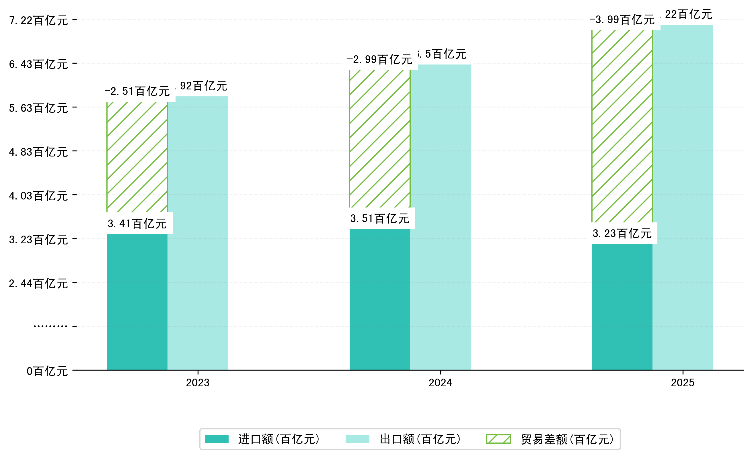 以人民币计,2025年1-3月西安市贸易差额为398,9278,5052万元(贸易顺差),相比上年同期增加了99,5016,2920万元,同比增加33.23%。