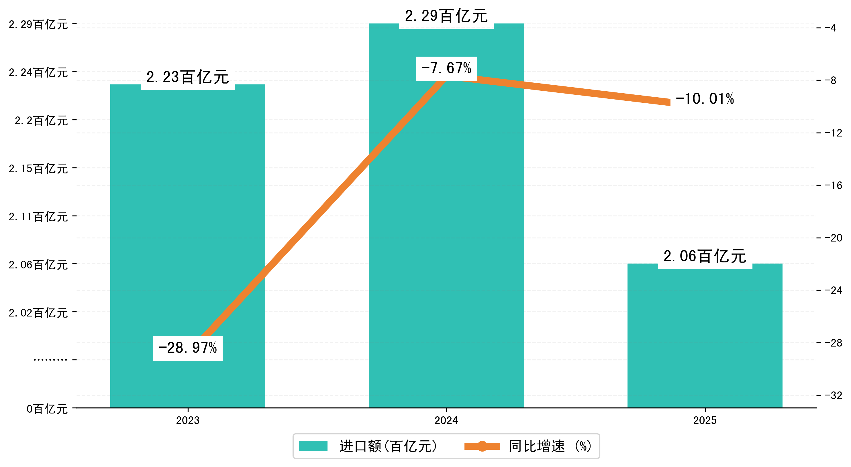 以人民币计,2025年1-2月西安市进口额为206,1170.4919万元,相比上年同期减少了22,9392.5101万元,同比减少了-9.60%。
