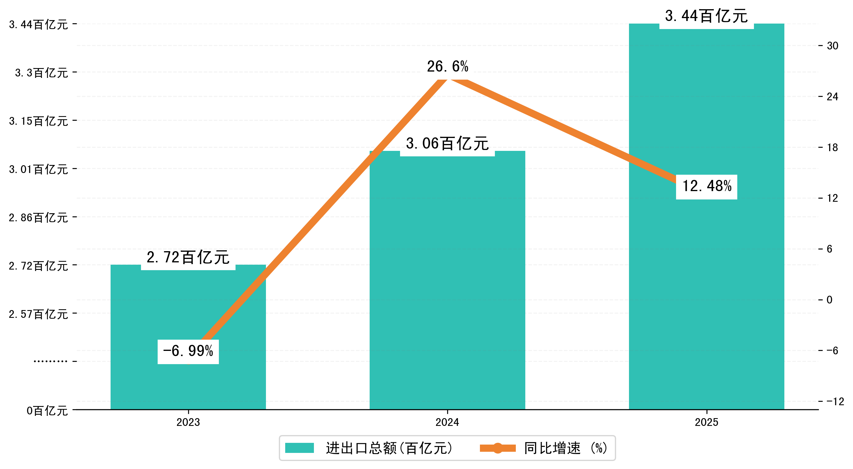 以人民币计,2025年1月西安市进出口总额为344,1009.2503万元,相比上月减少了7,9271.6402万元;相比上年同期增加了38,1845.7925万元,同比增加了12.70%。