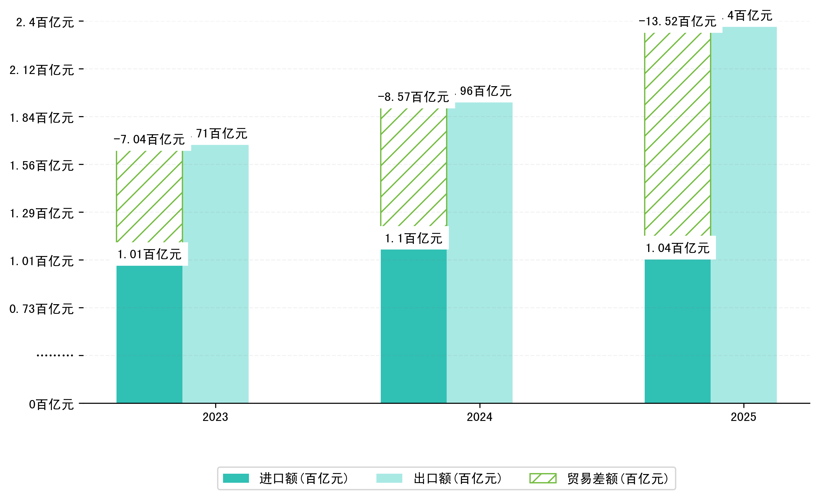 以人民币计,2025年1月西安市贸易差额为135,1794,0385万元(贸易顺差),相比上月增加了9,3171,4078万元,即1,2723,7824万美元;相比上年同期增加了49,5189,1083万元,同比增加57.81%。