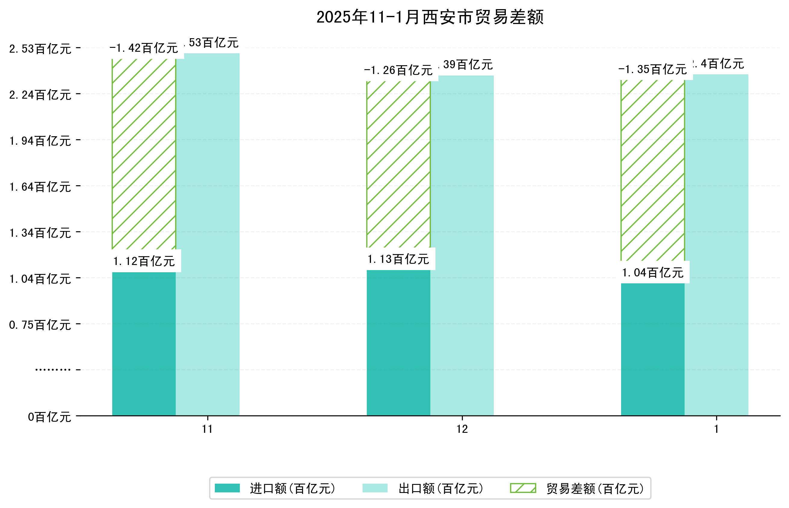 一、2025年1月西安市单月出口总额及进出口差额统计分析