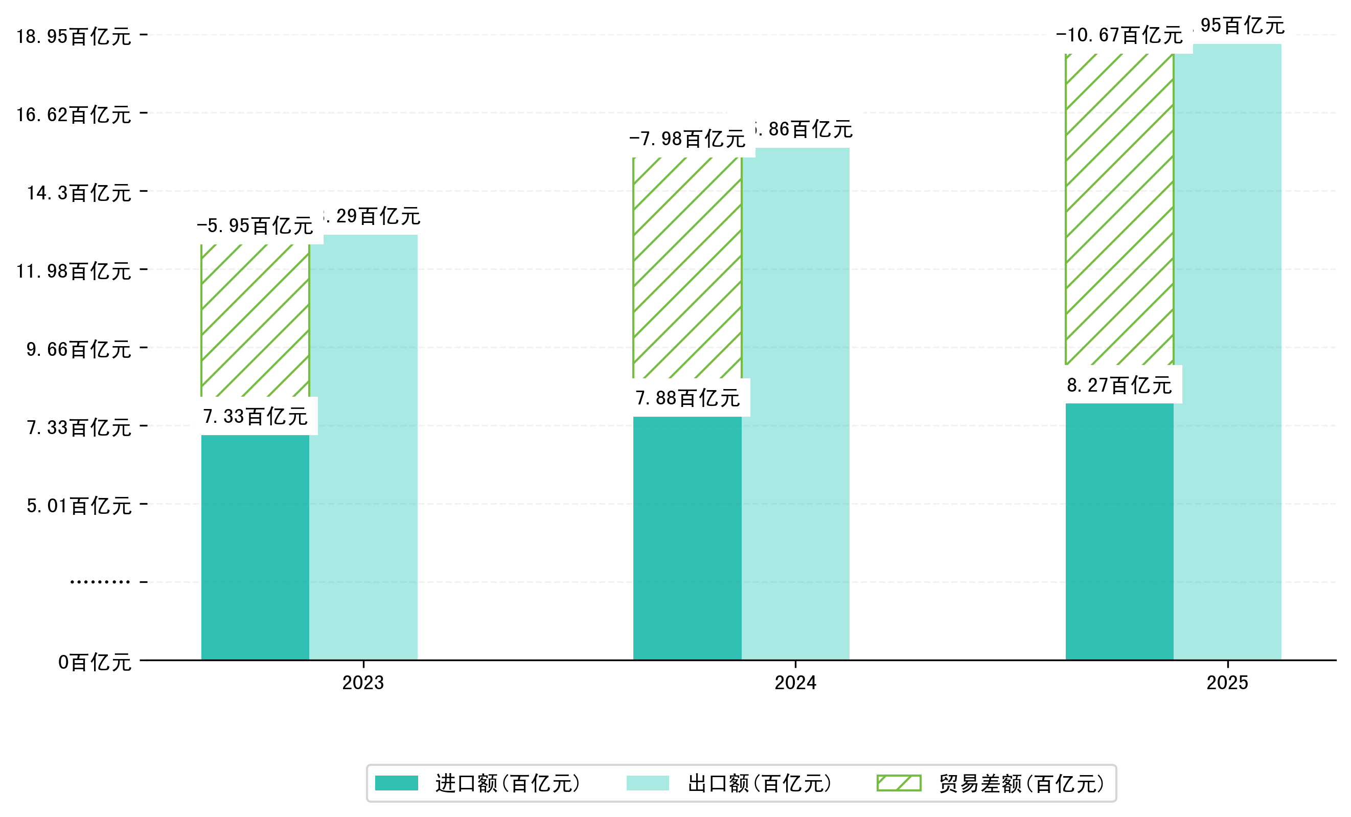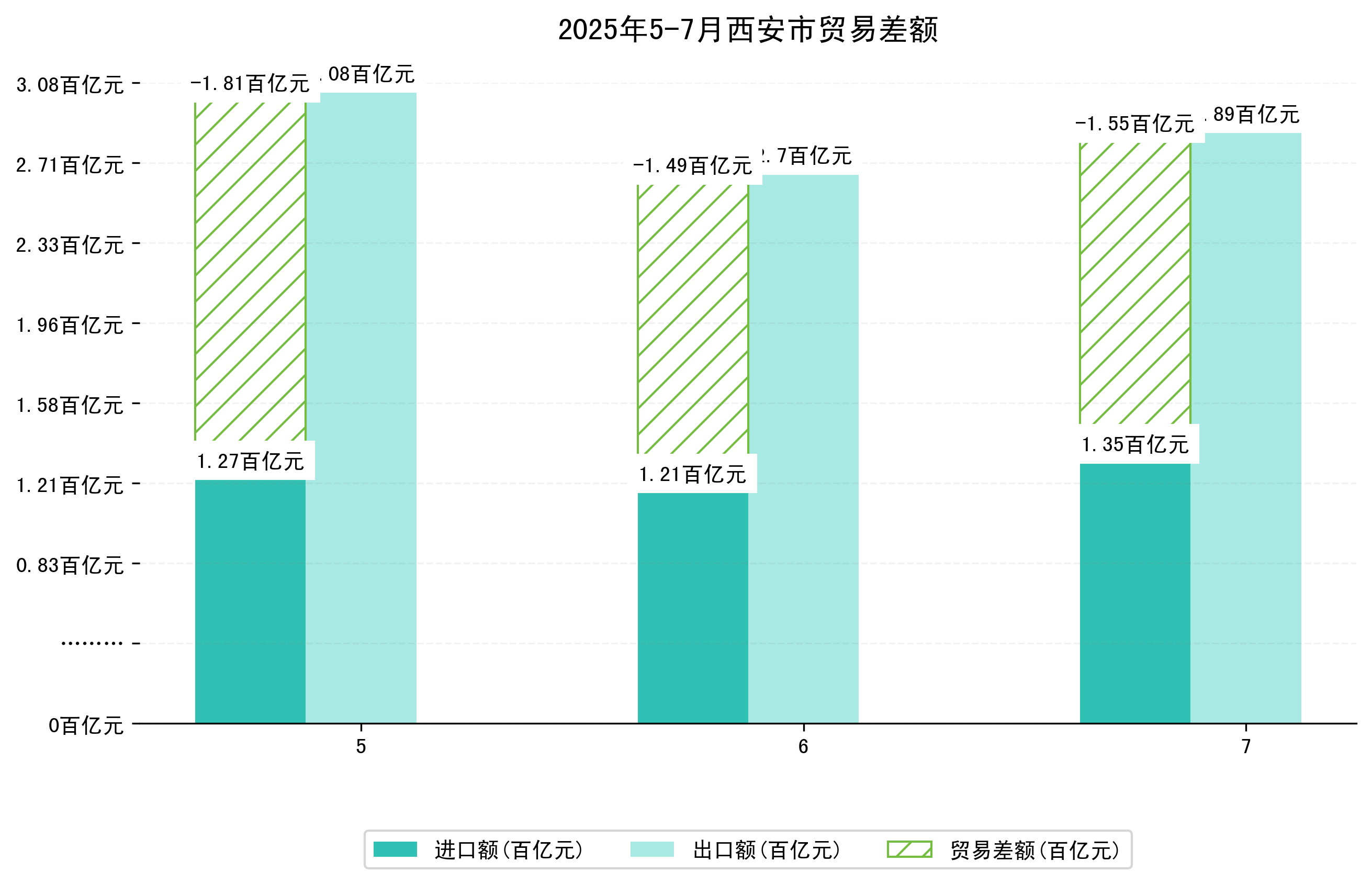 以人民币计,2025年7月西安市贸易差额为154,6712,2417万元(贸易顺差),相比上月增加了5,6904,3559万元,即8558,6723万美元;相比上年同期增加了49,1668,8574万元,同比增加46.6%。