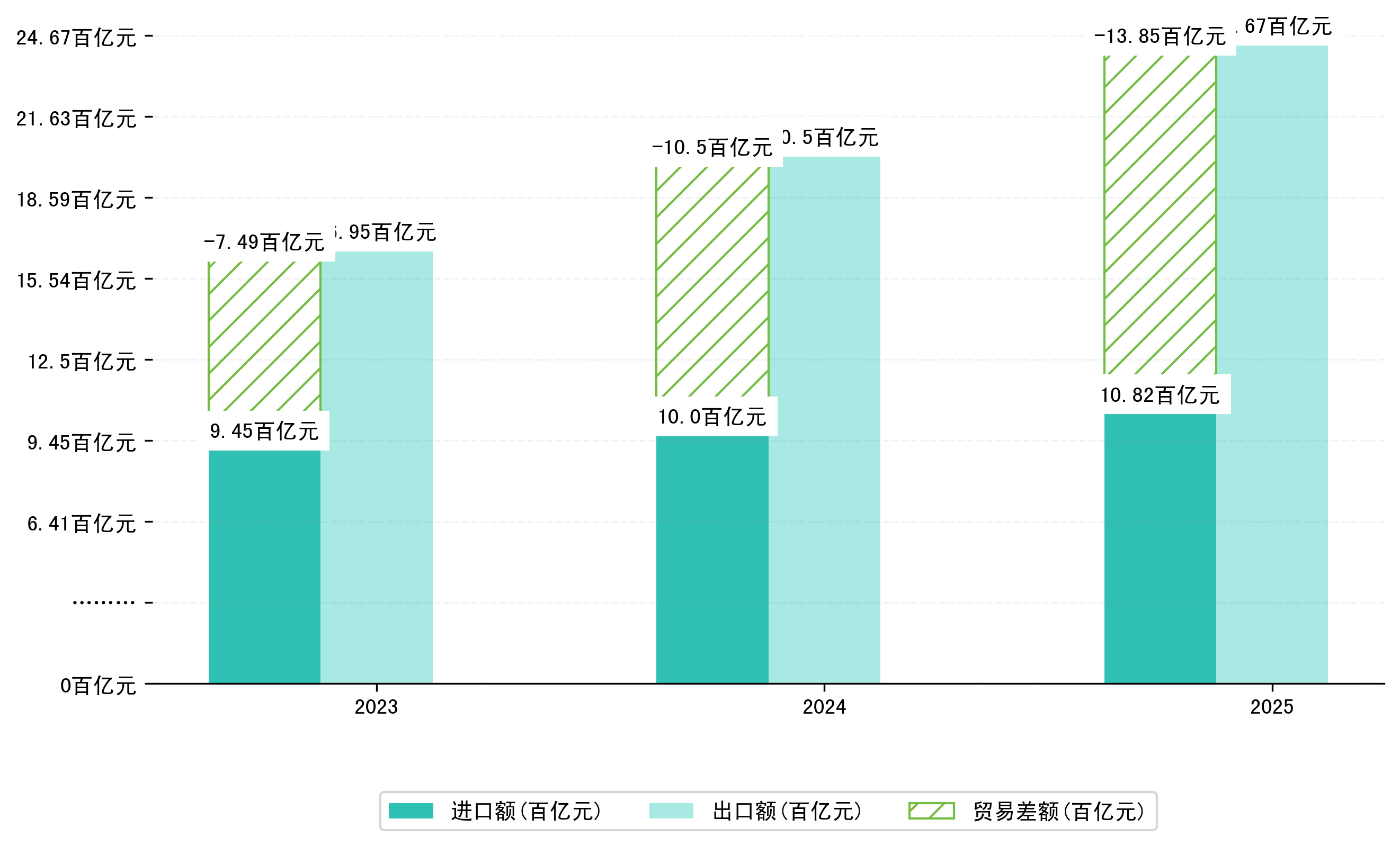 (图八:2023-2025年1-9月西安市累计贸易差额)