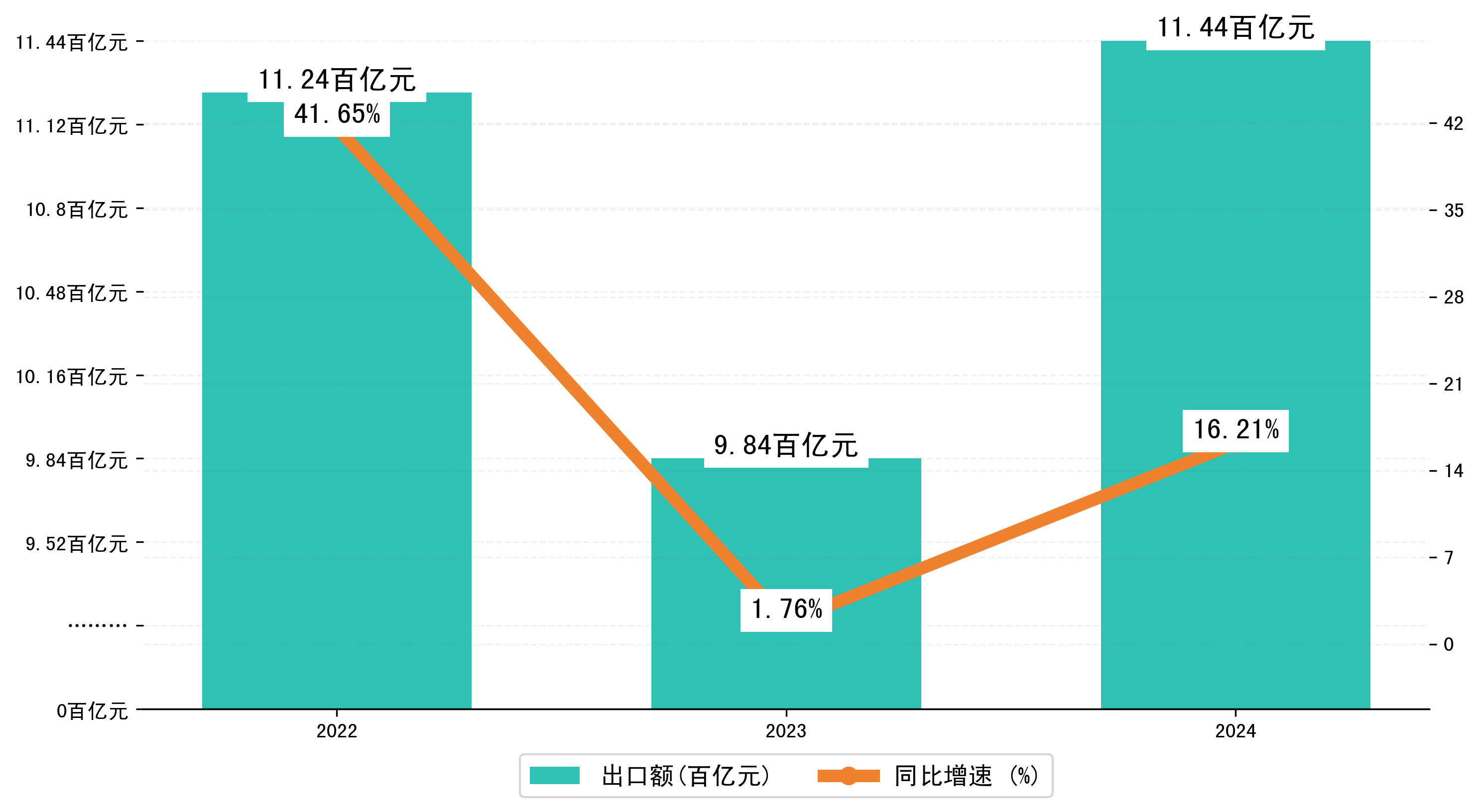 以人民币计,2024年1-5月西安市出口额为1143,5888.9752万元,相比上年同期增加了159,5588.8337万元,同比增加了16.40%。
