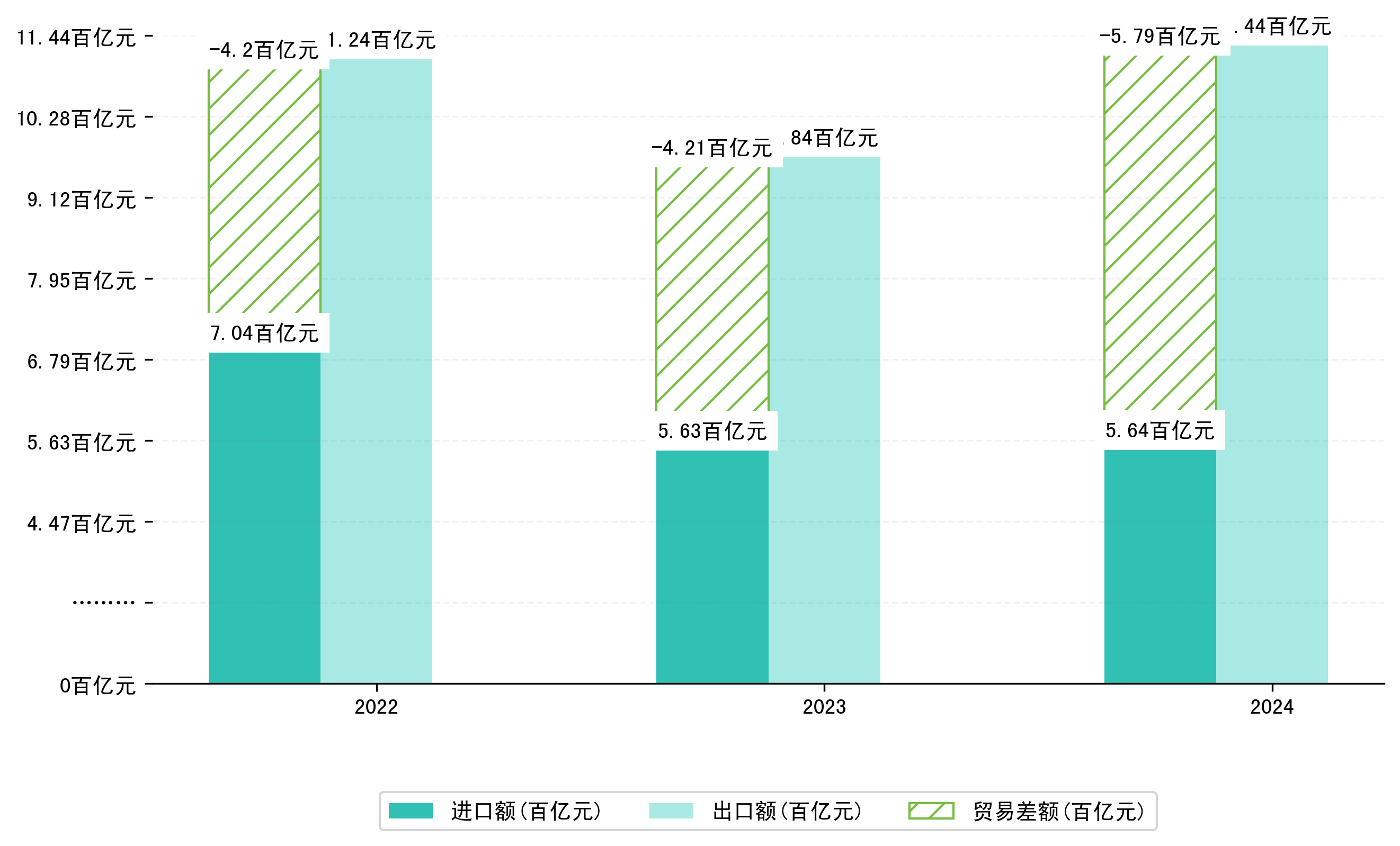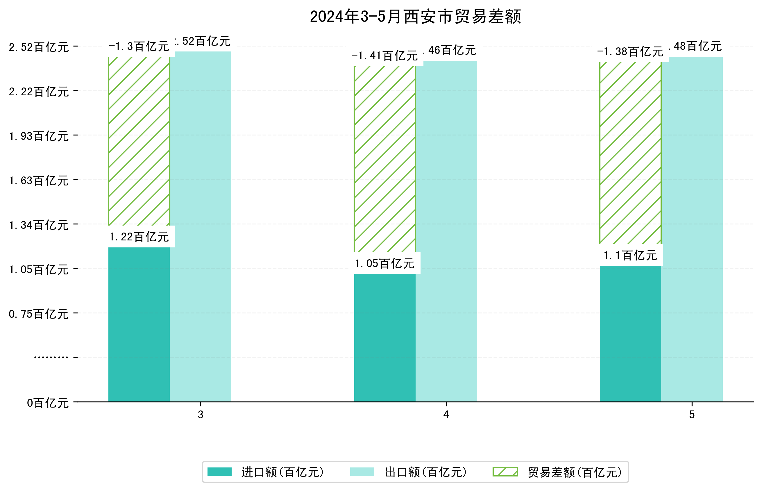 以人民币计,2024年5月西安市贸易差额为138,2547,0460万元(贸易顺差),相比上月减少了2,7805,1294万元,即3890,8843万美元;相比上年同期增加了72,4312,9660万元,同比增加110.04%。