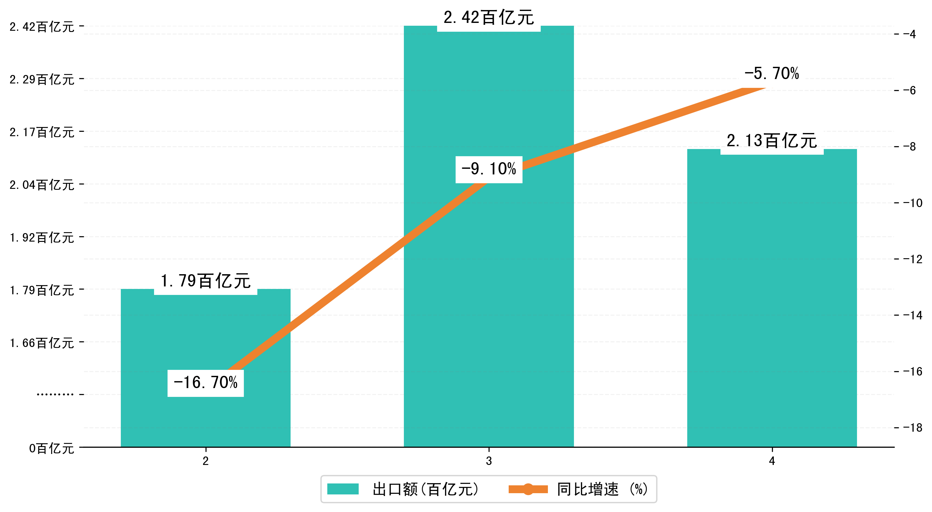 以人民币计,2023年1-4月西安市出口额为804,6190.0636万元,相比上年同期减少了48,1270.5565万元,同比减少了-5.70%。