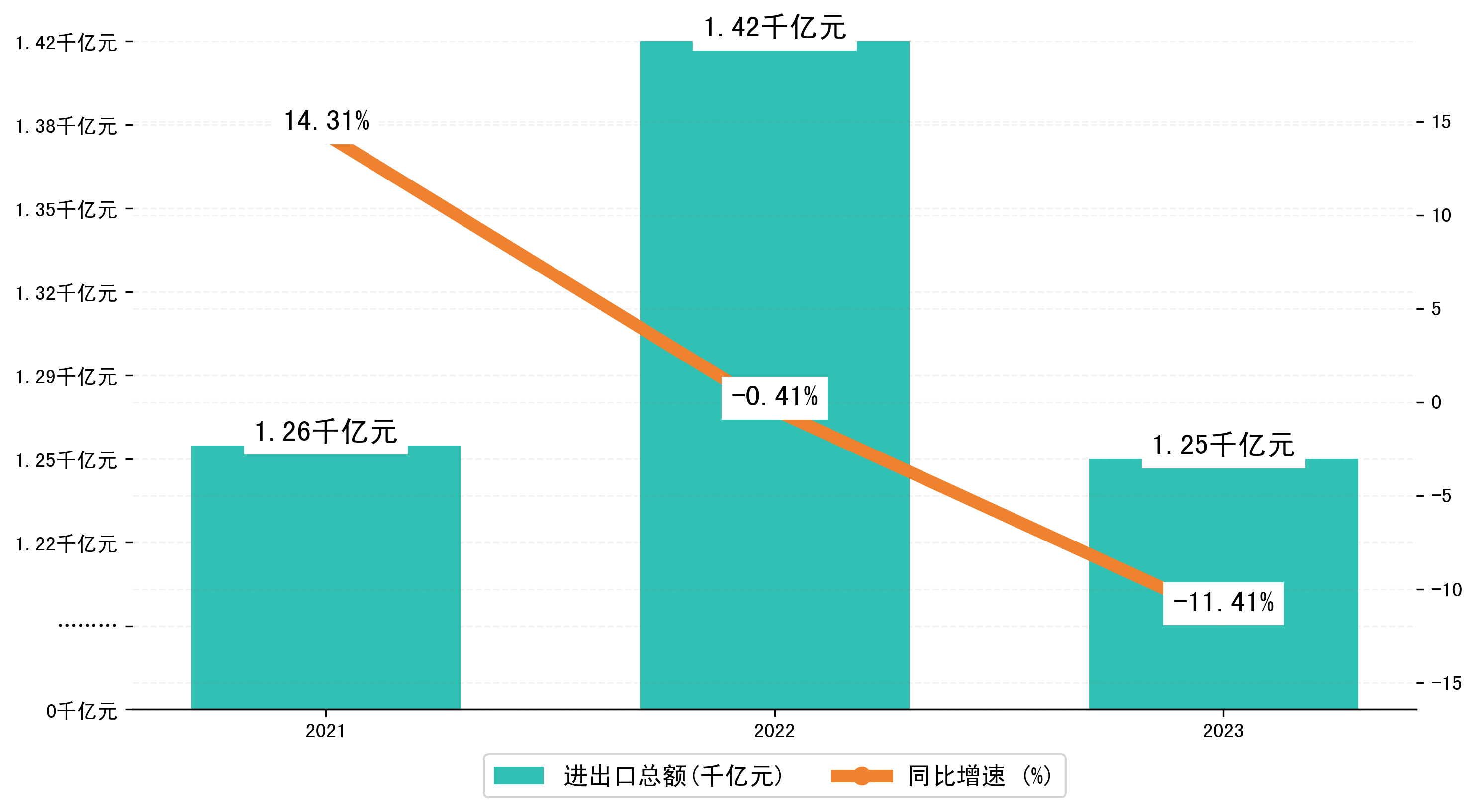 以人民币计,2023年1-4月西安市进出口总额为1253,9310.9074万元,相比上年同期减少了161,4764.2977万元,同比减少了-11.50%。