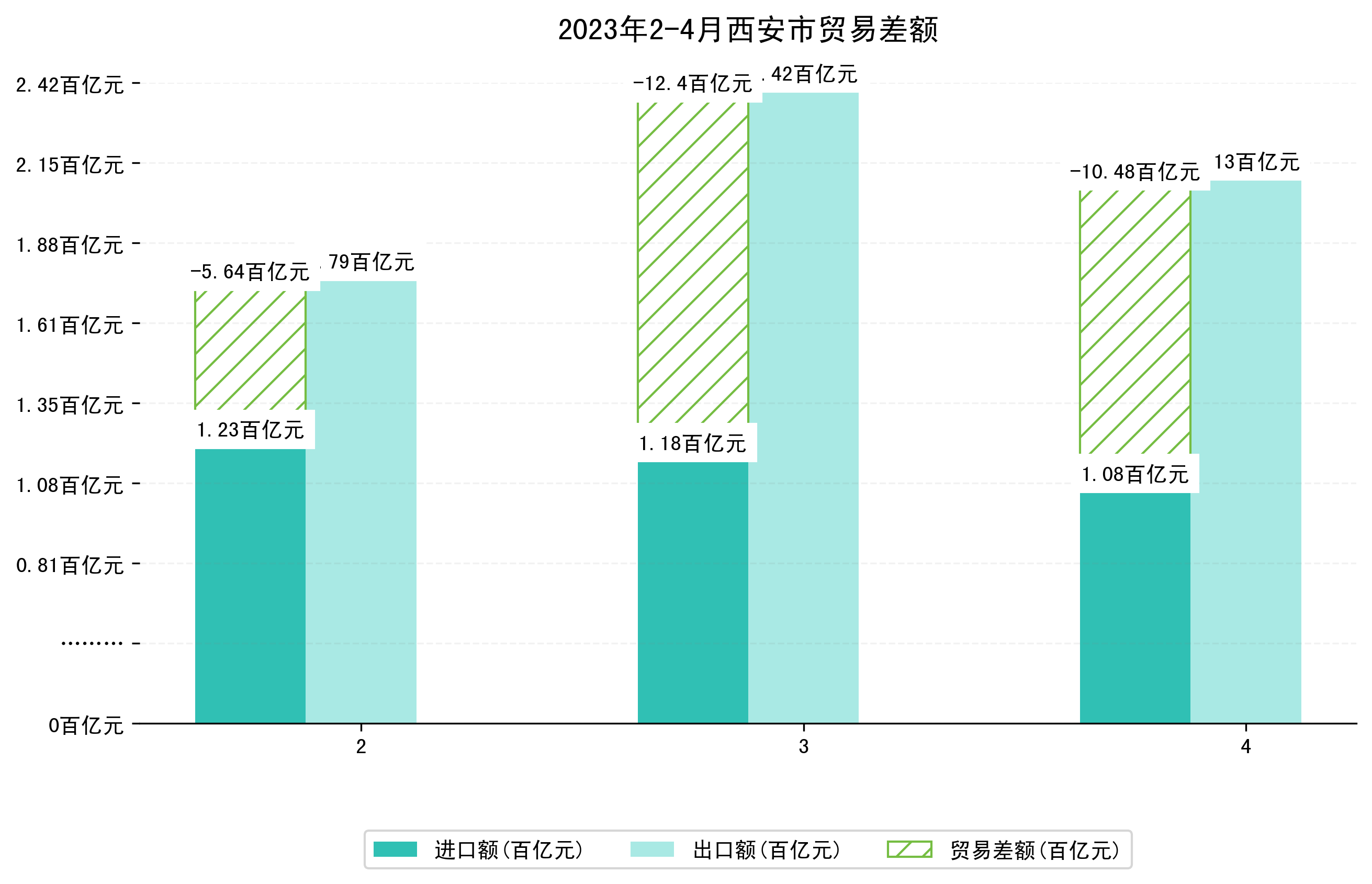 一、2023年4月西安市单月出口总额及进出口差额统计分析