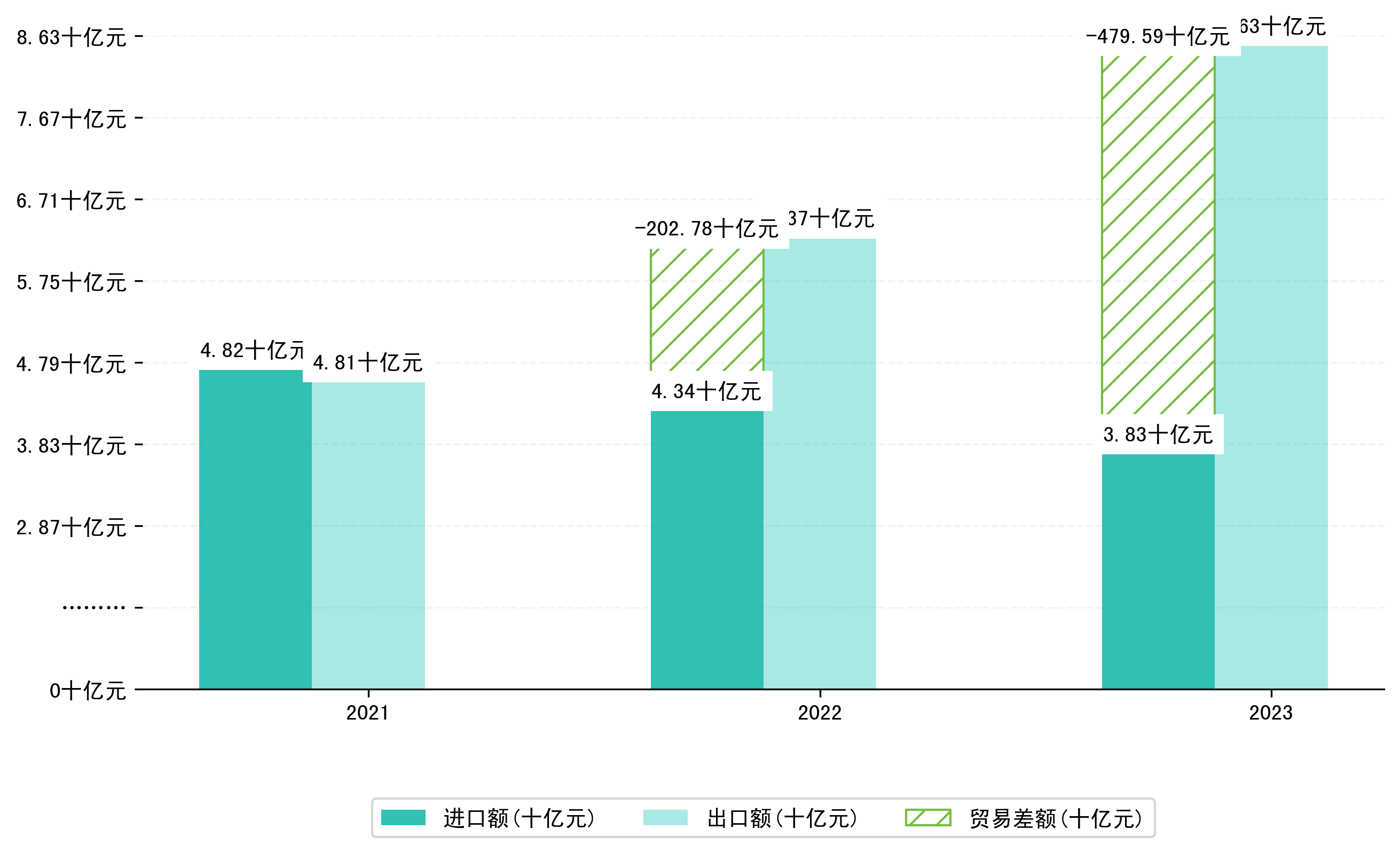 以人民币计,2023年1-5月湘潭市贸易差额为47,9593,9429万元(贸易顺差),相比上年同期增加了27,6817,5561万元,同比增加136.51%。